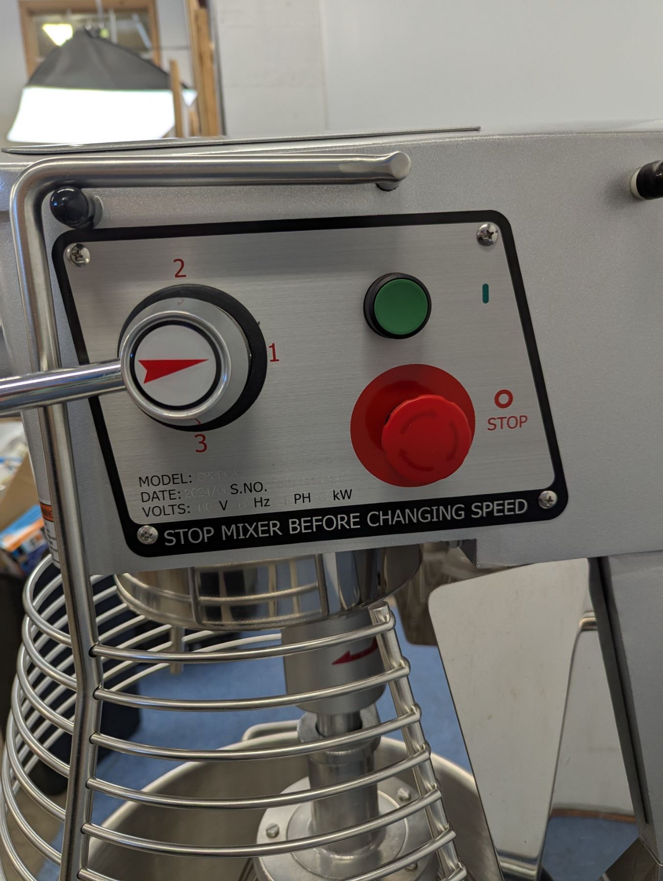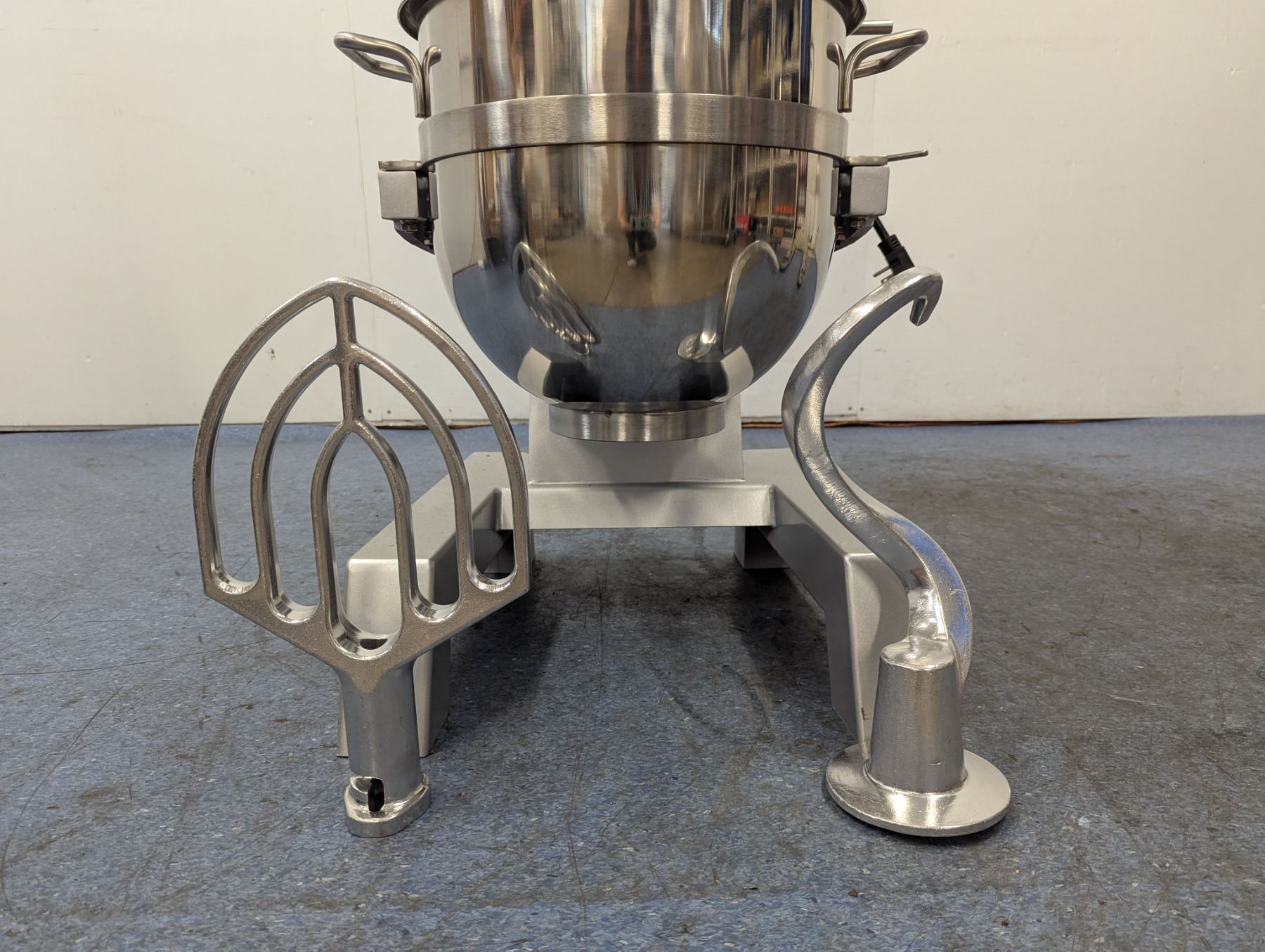 [New In Crate,] Power: 2 HP / 1.5 kW, Shaft RPM (1st Speed/2nd Speed/3rd Speed): 91/66/282 Capacity: 30qt, Timer: No, Guard: Yes, Electrical: 110/60/1Ph, Dimensions: 48" x 40" x 58", Gross Weight 480 lbs, Attachments: Wire whip, Dough hook & Flat beater
