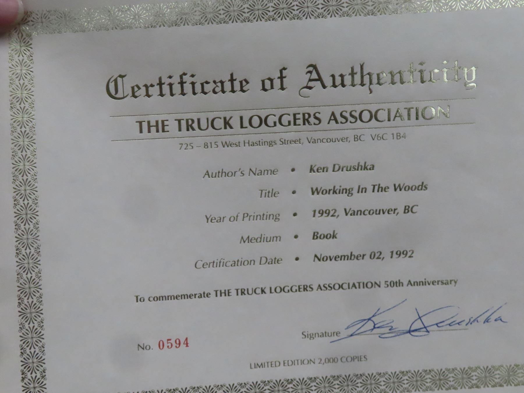 Lot 399 "Working in the Woods" by Ken Drushka, 1992, Signed Copy w/ COA