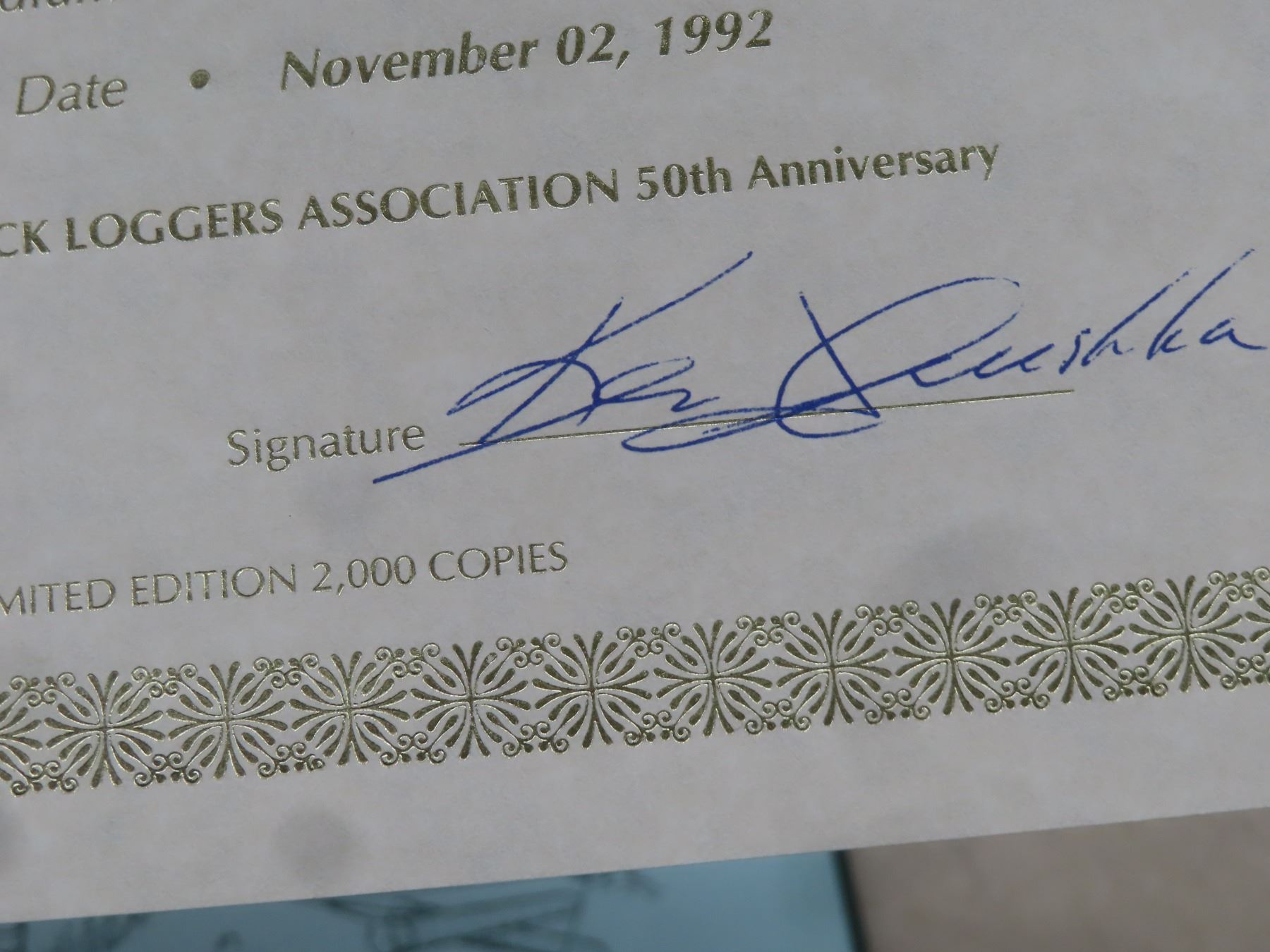 "Working in the Woods" by Ken Drushka, 1992, Signed Copy w/ COA