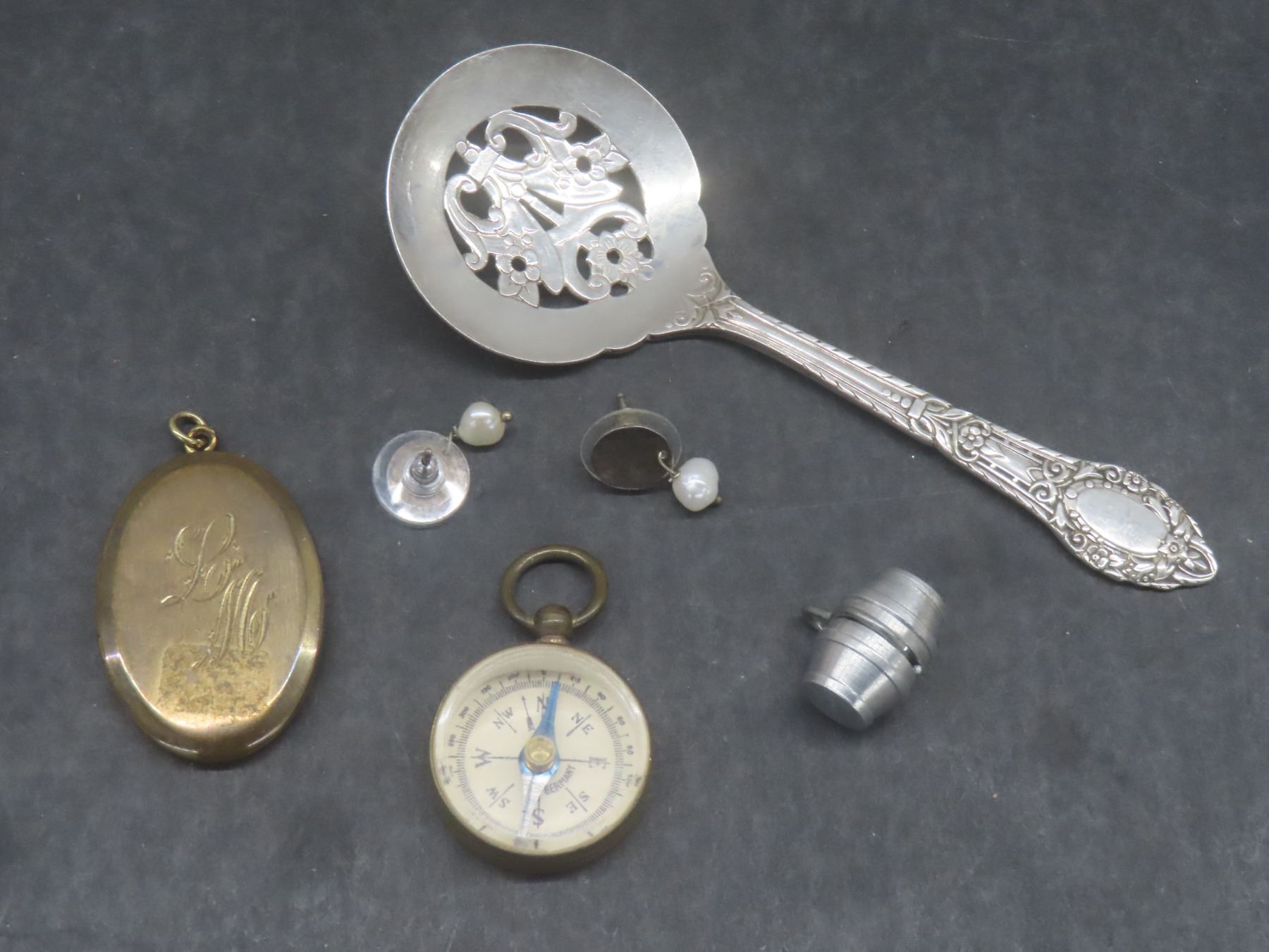 Lot 559b Thimbles, Compass, Lockets, Tongs, Button Hooks, and More