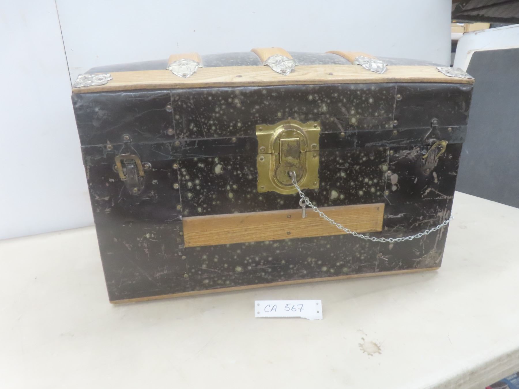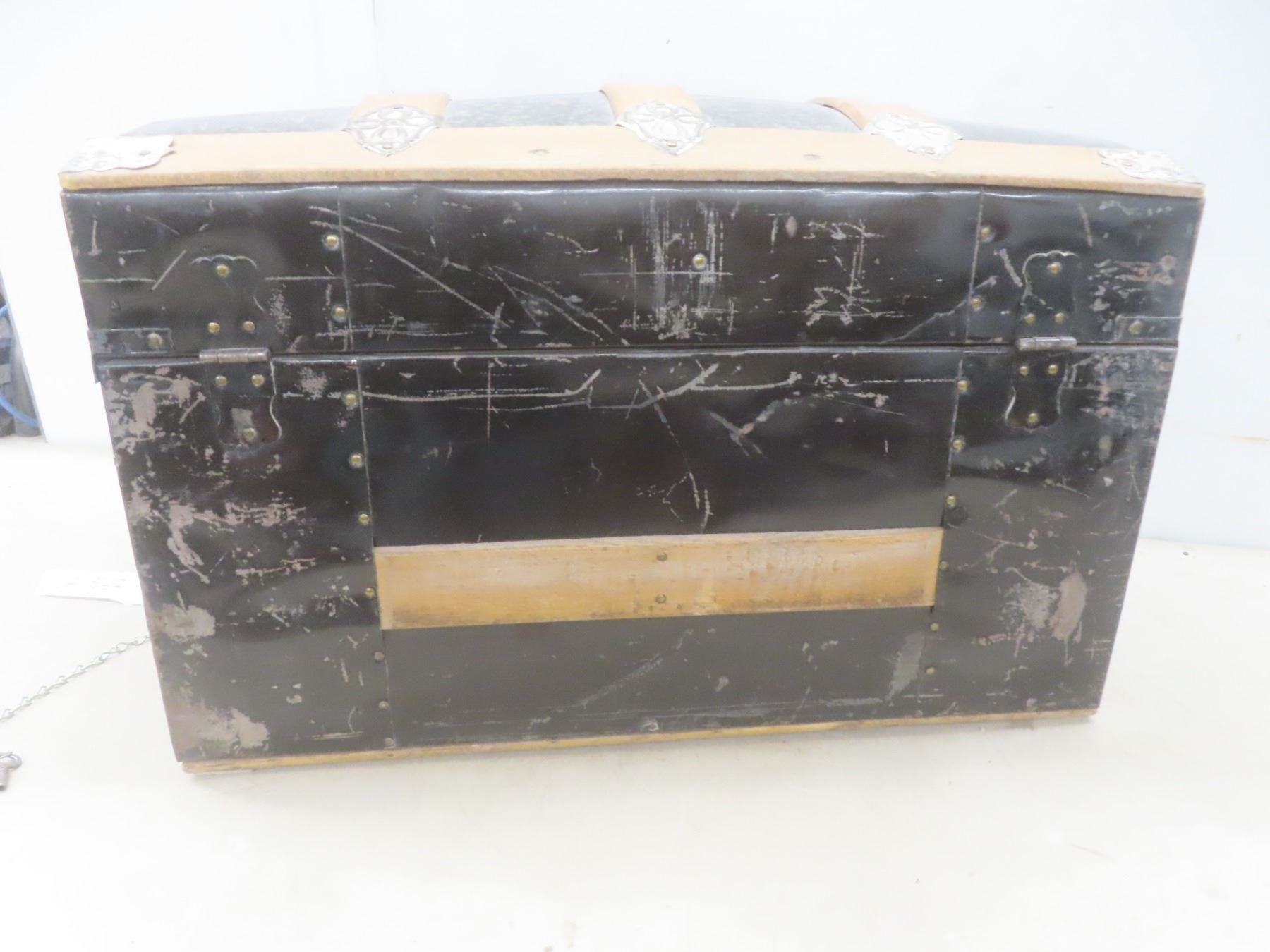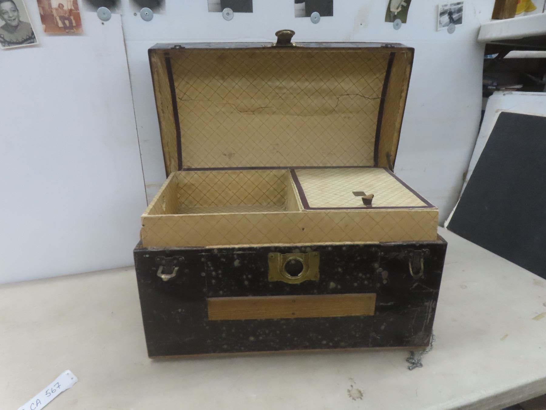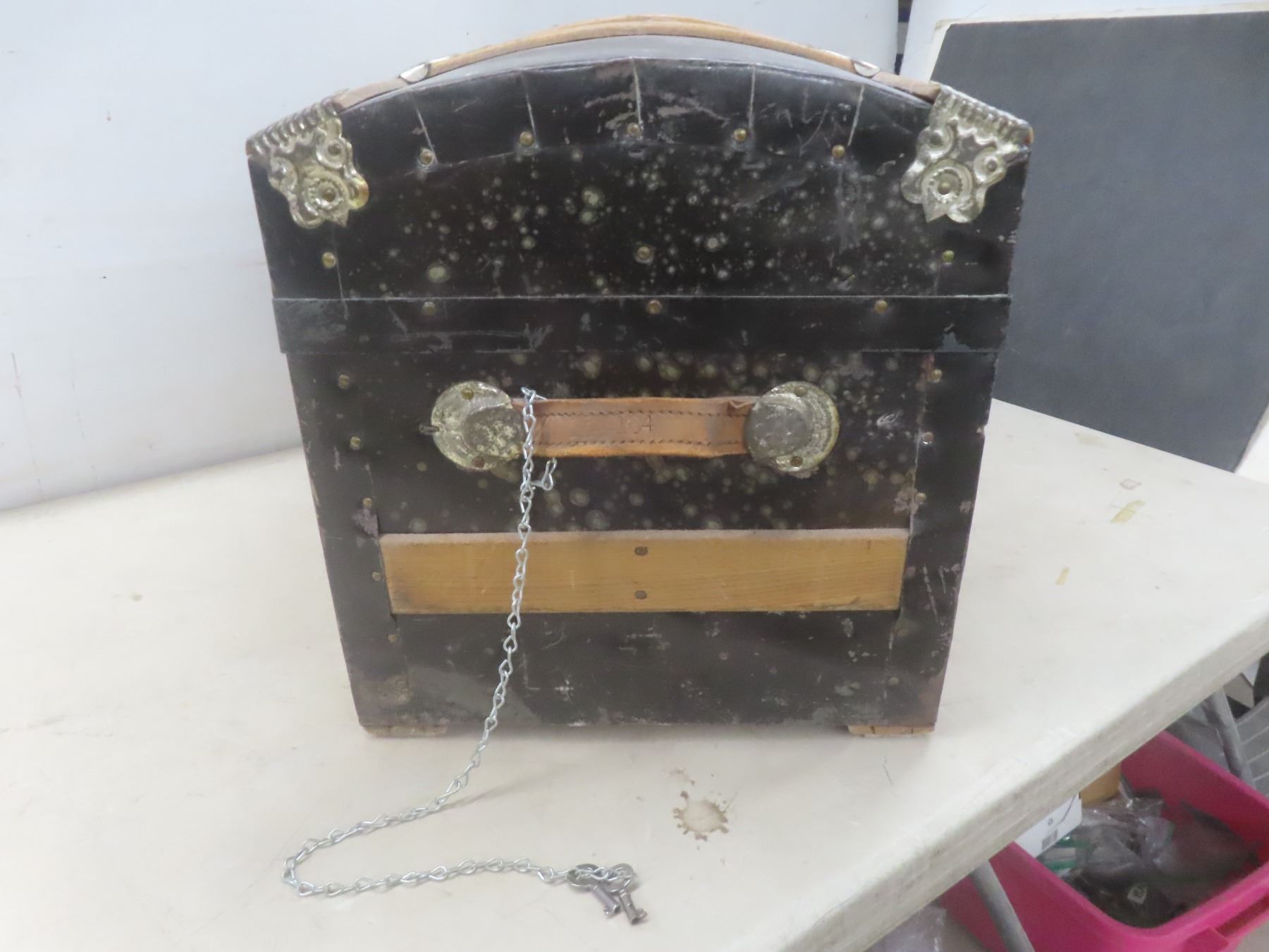 Lot 567 1870s Canadian Steamer Trunk w/ 2 Original Keys and Tray, 15-1/2" x 24" x 14-1/2"