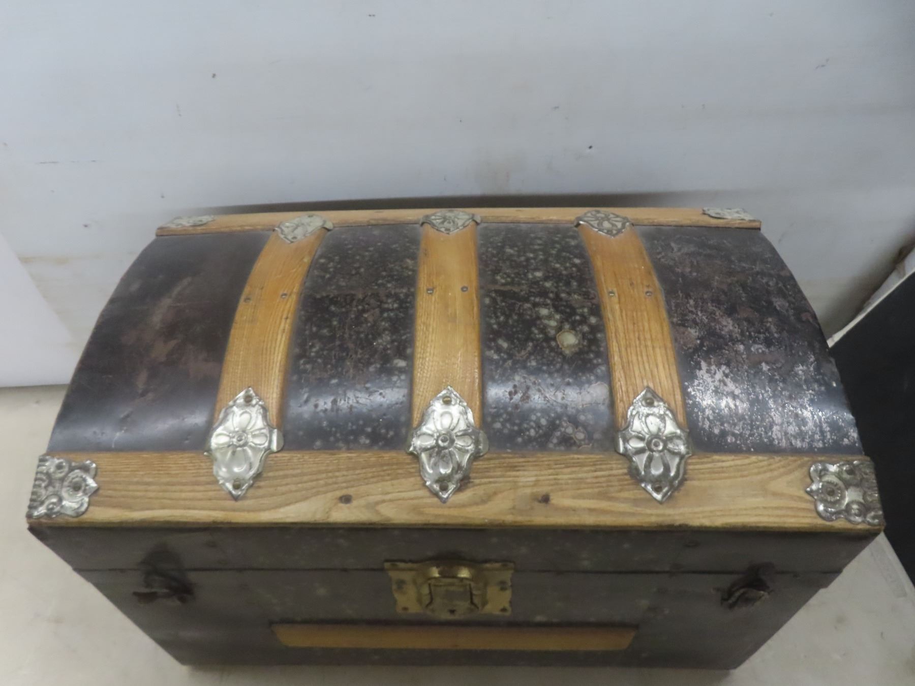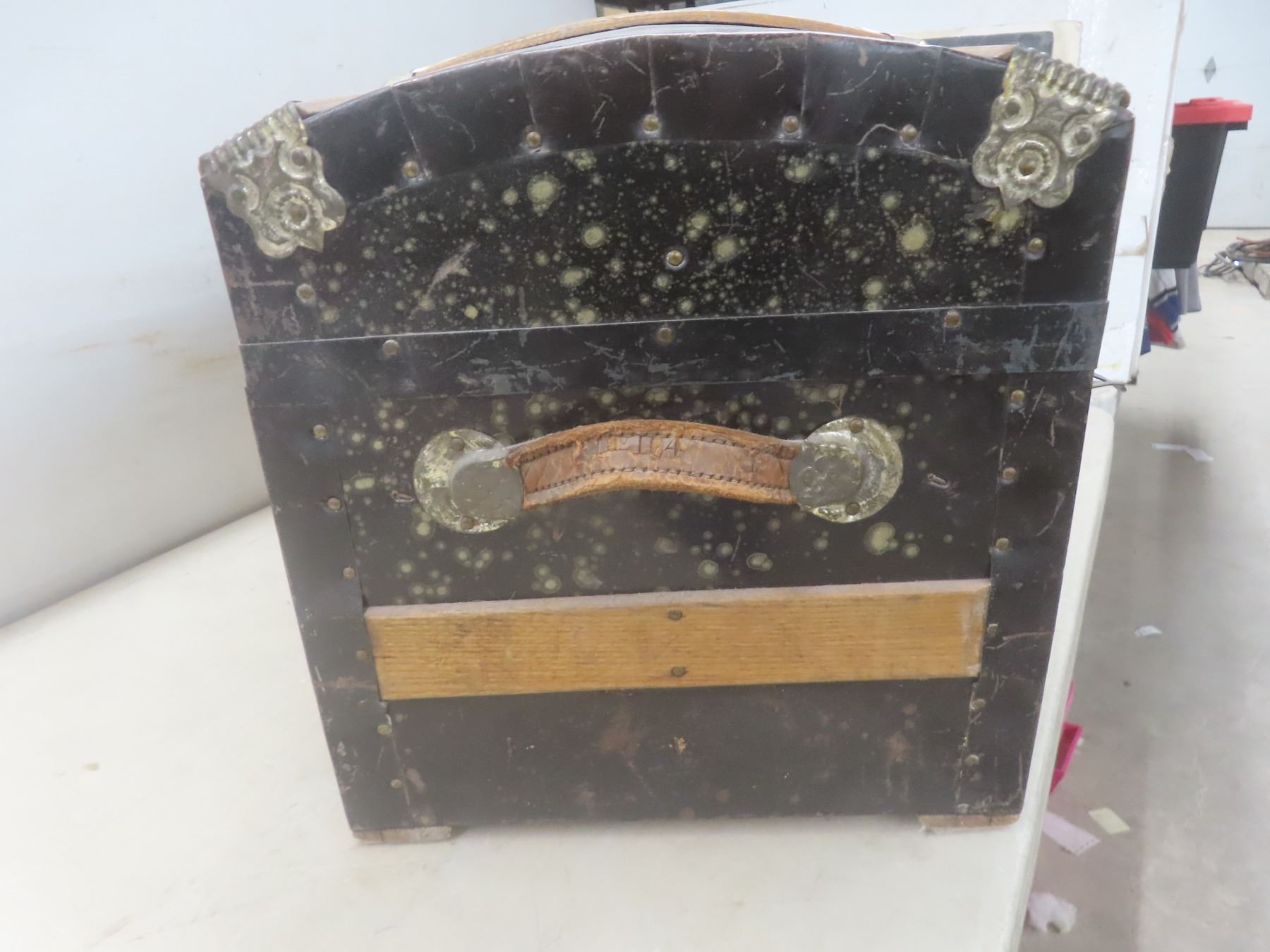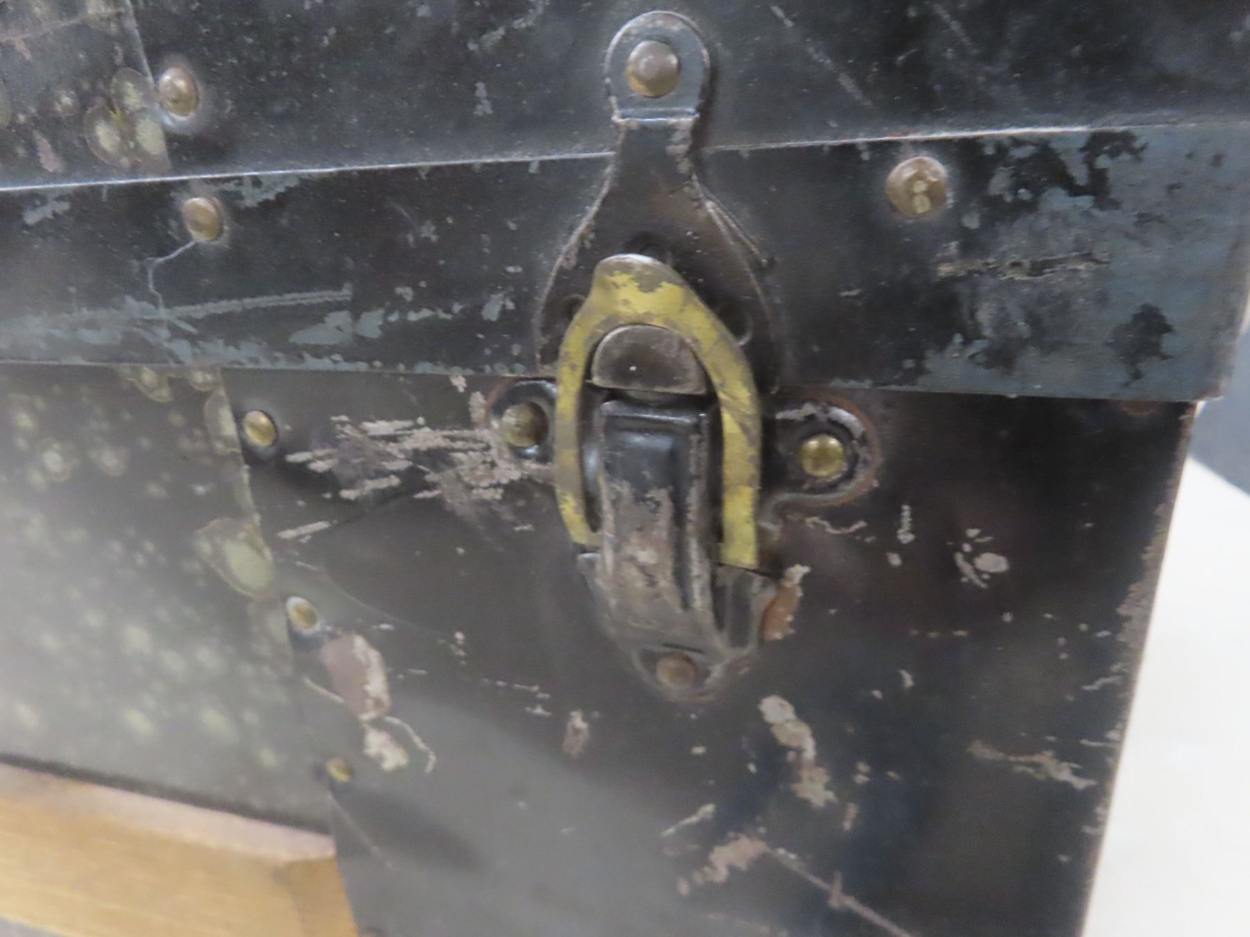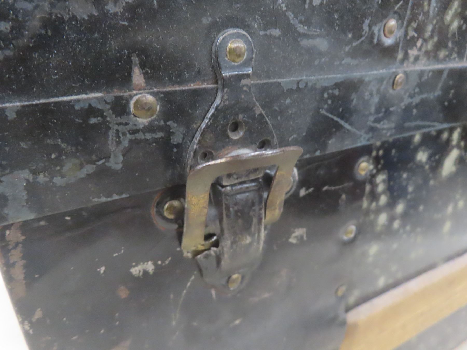Lot 567 1870s Canadian Steamer Trunk w/ 2 Original Keys and Tray, 15-1/2" x 24" x 14-1/2"