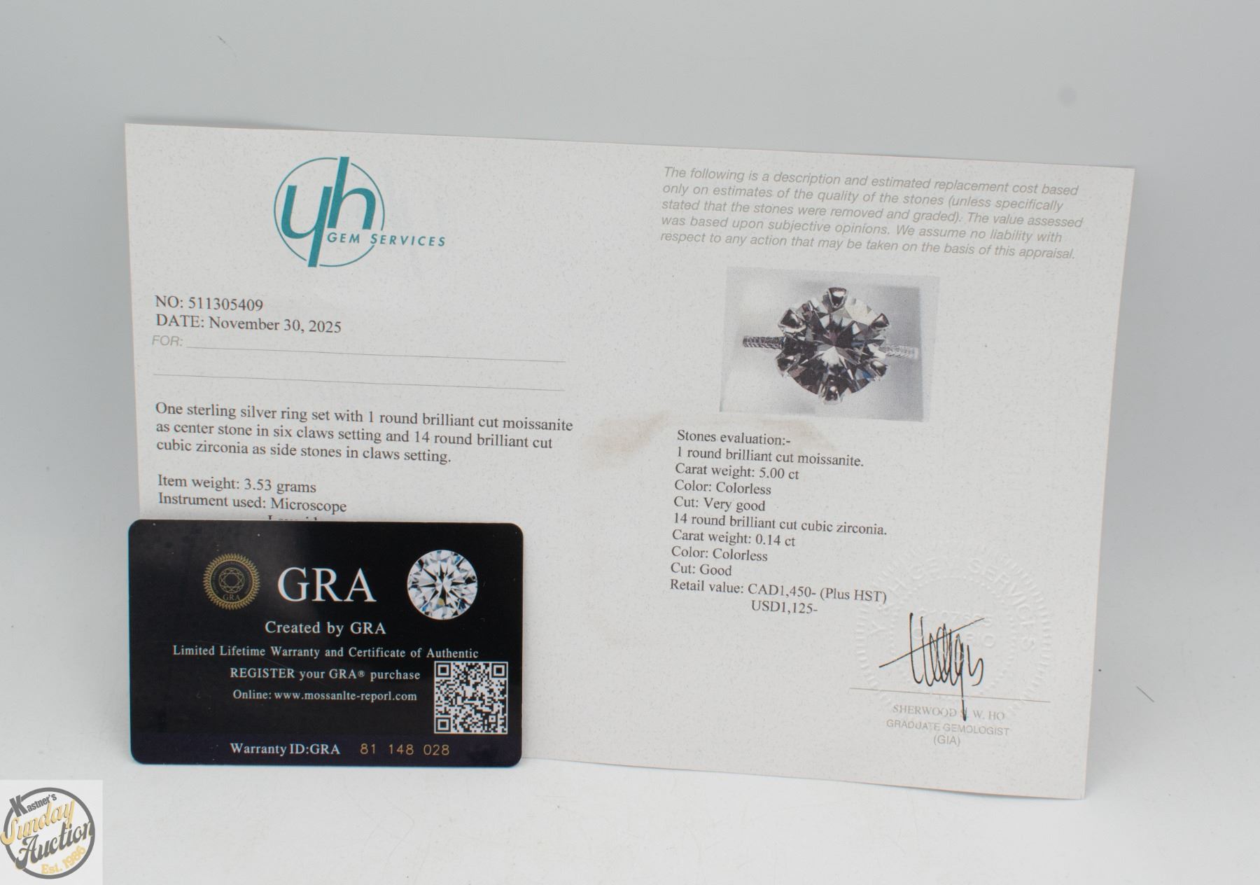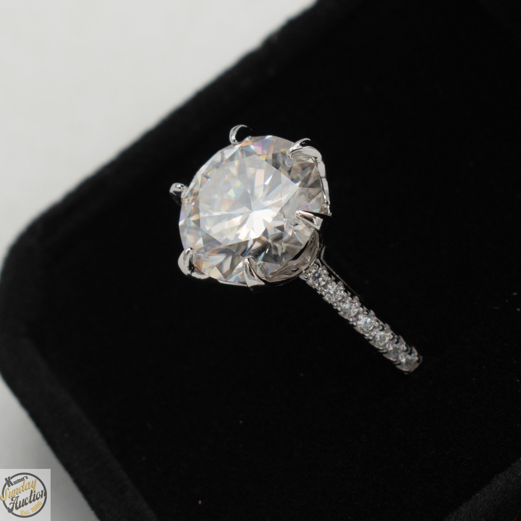 CUT MOISSANITE STONE VVS D COLOR SET IN CENTER WITH 14 ROUND BRILLIANT CUT CUBIC ZIRCONIA AND SET IN SHANK SET IN 925 SILVER RING SIZE 6 RETAIL VALUE $1,450.00 **ALL ITEMS MUST BE REMOVED BY 5PM SATURDAY, APRIL 25TH 2026. ALL REMAINING ITEMS WILL BE SUBJECT TO A $6.00 PER DAY STORAGE CHARGE. ANY ITEMS REMAINING AFTER MONDAY, MAY 11TH 2026 WILL BE CONSIDERED FORFEITED. NO REFUNDS WILL BE ISSUED FOR FORFEITED ITEMS. TO SCHEDULE A PICK UP APPOINTMENT CLICK HERE