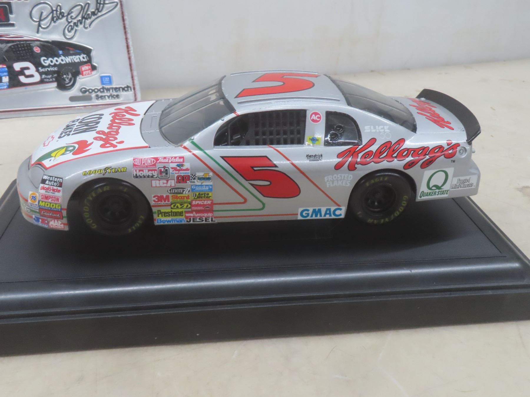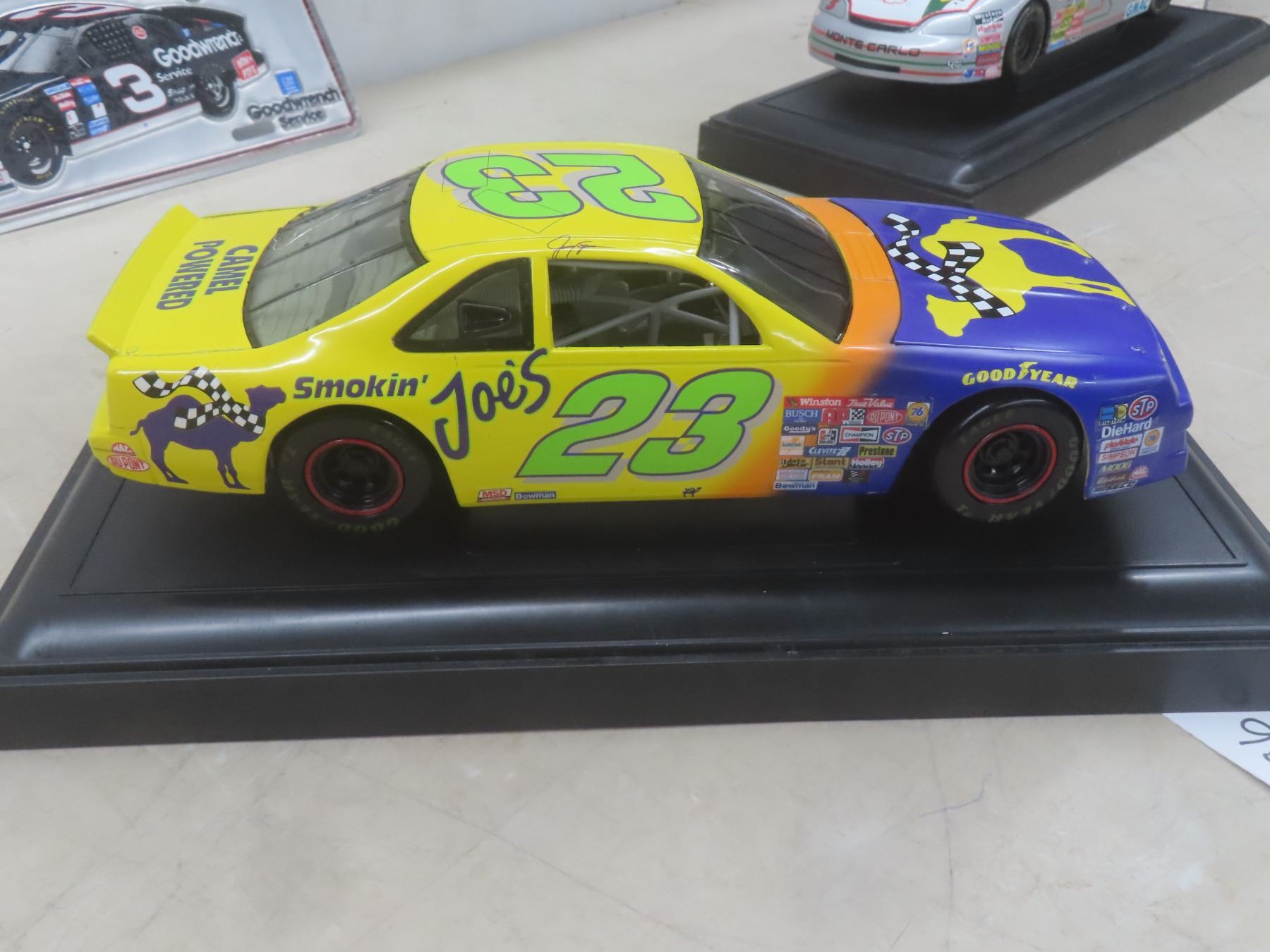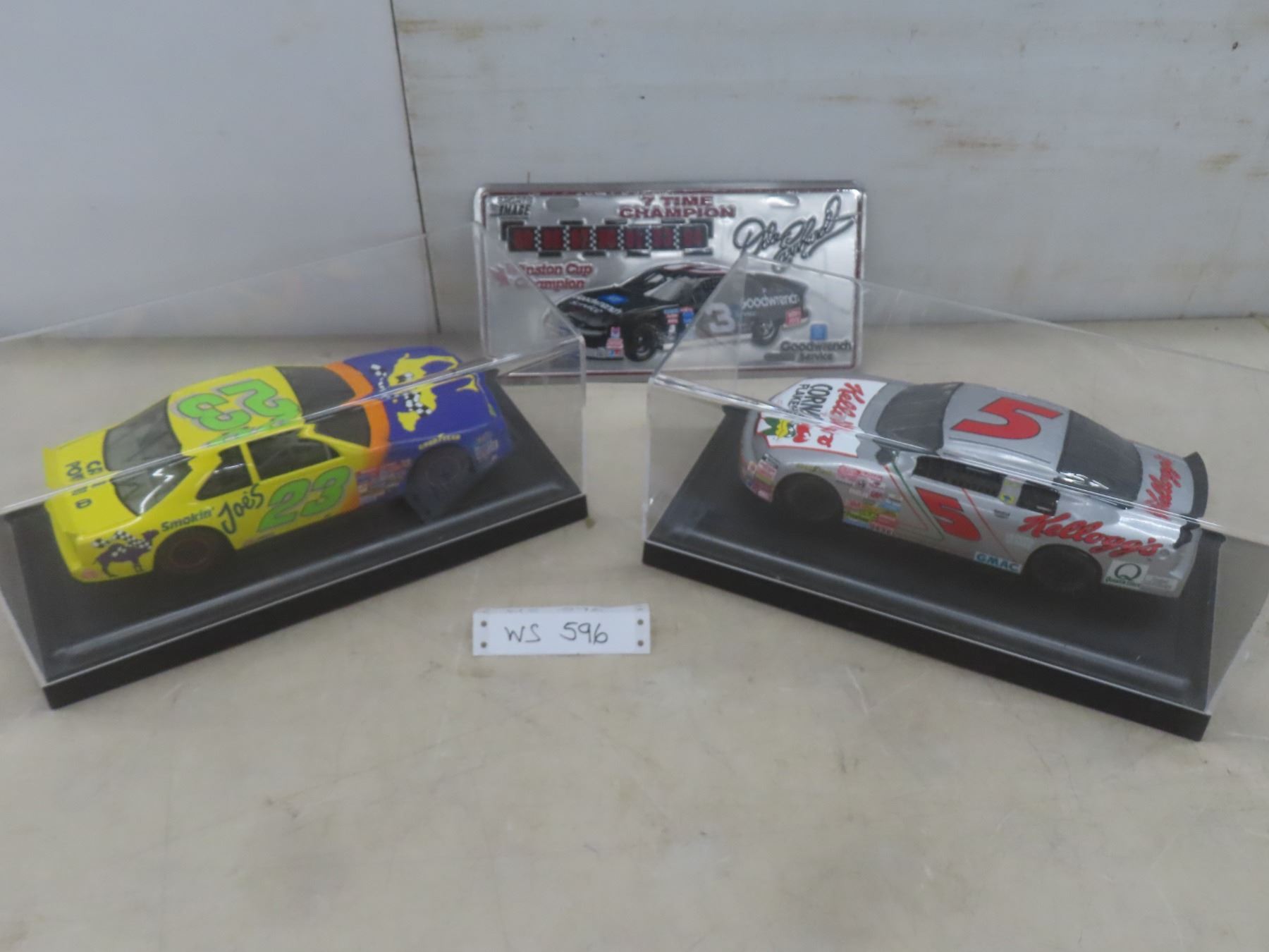 Lot 596 2 Nascar Die Cast – #5 Monte Carlo and #23 Thunderbird, 1/18 Scale, and Dale Earnhardt License Plate