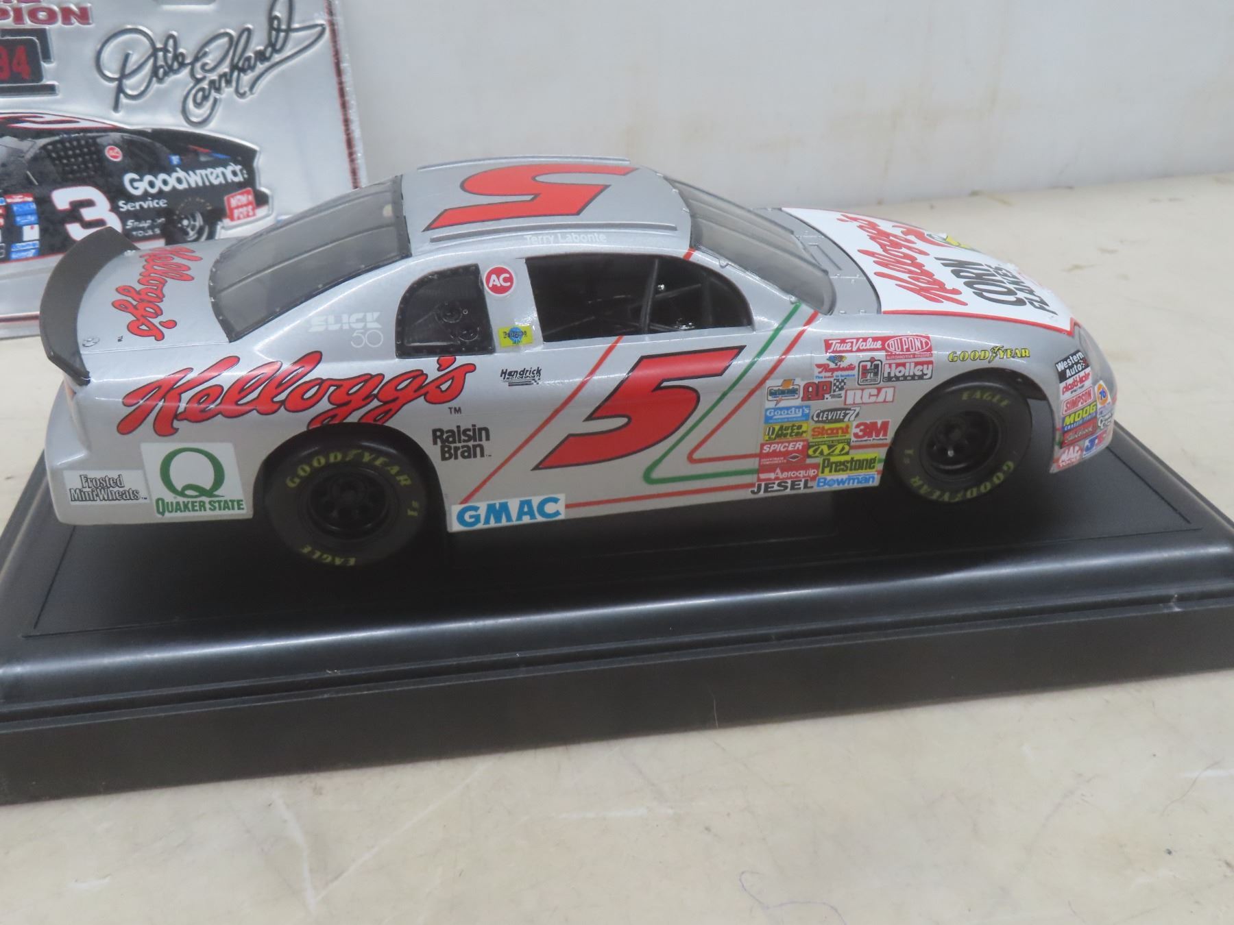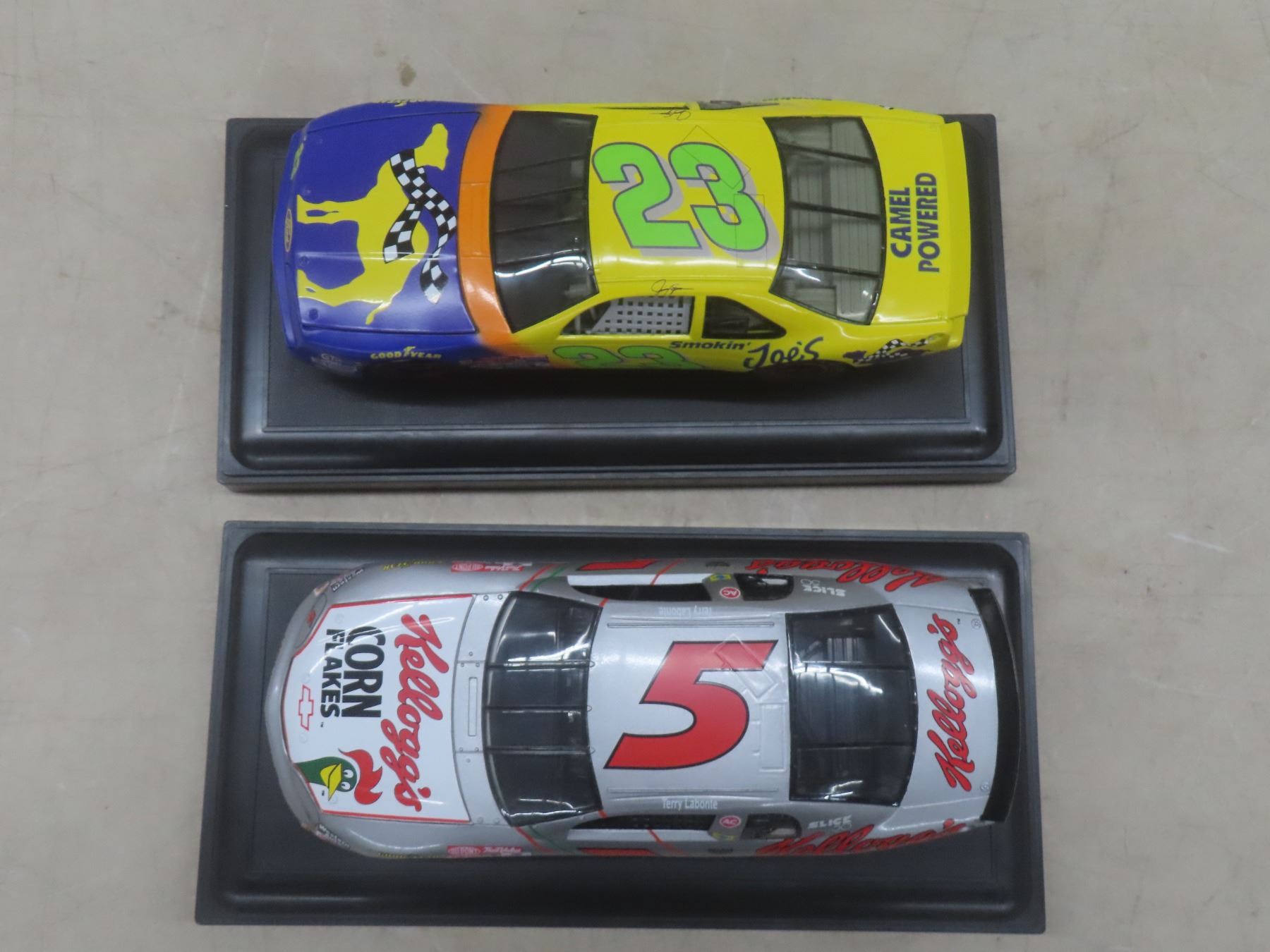 2 Nascar Die Cast – #5 Monte Carlo and #23 Thunderbird, 1/18 Scale, and Dale Earnhardt License Plate, Factory Sealed