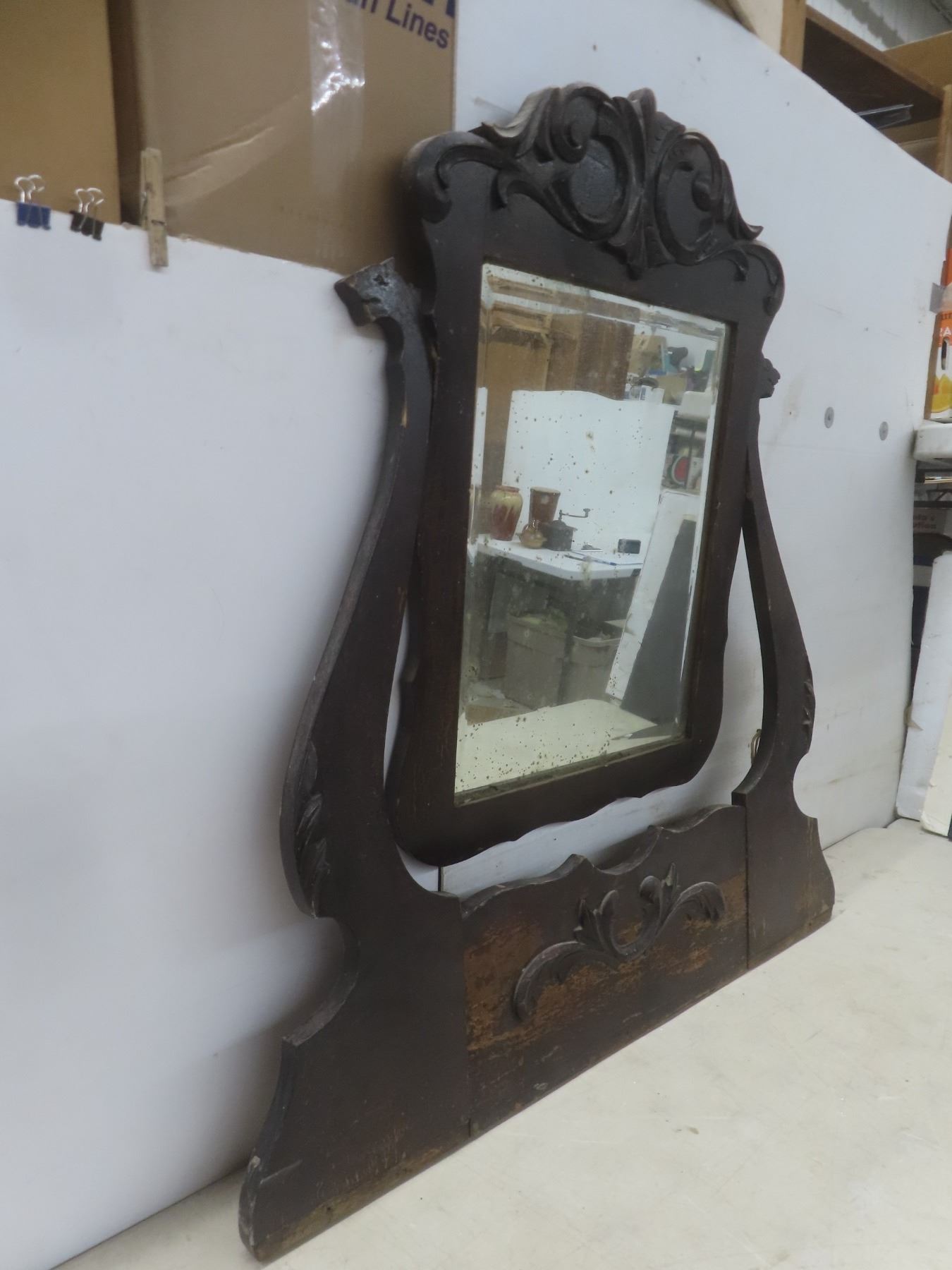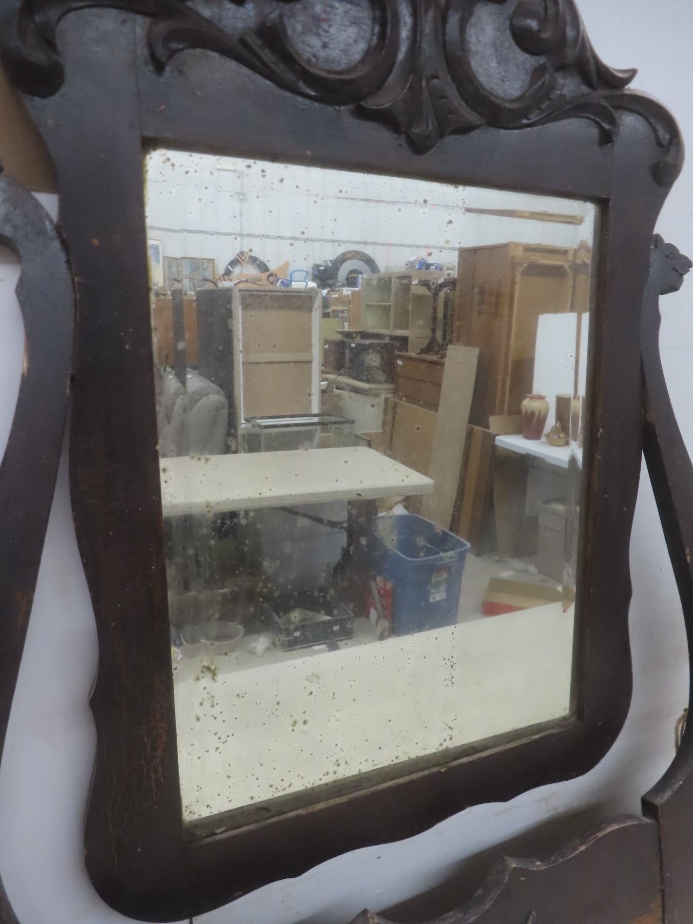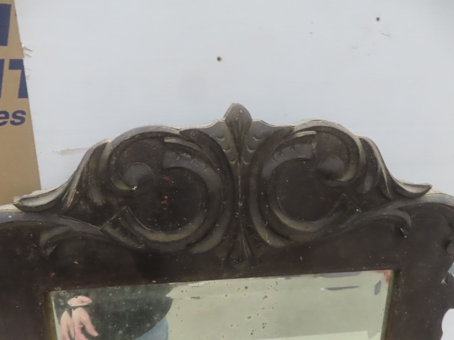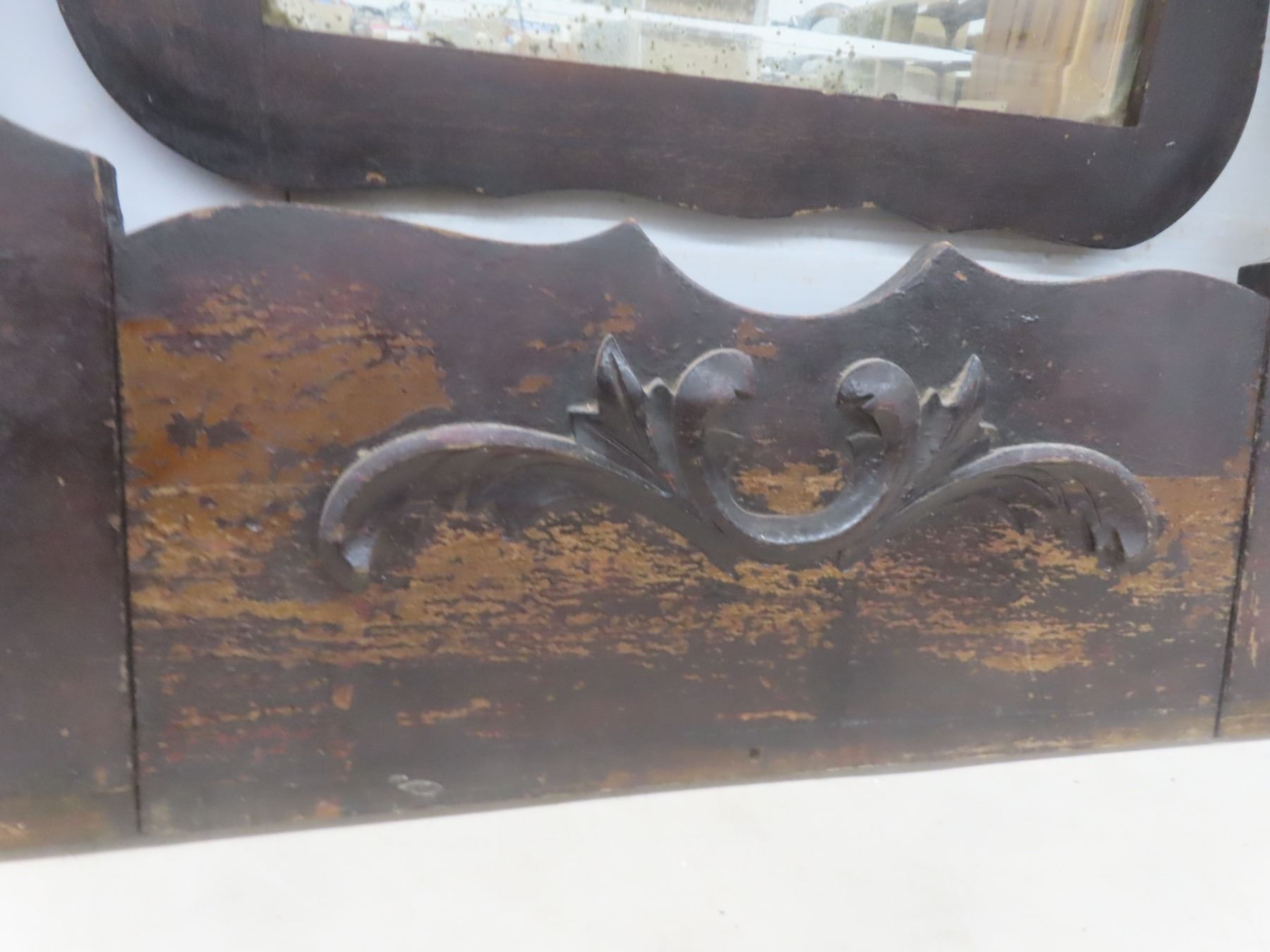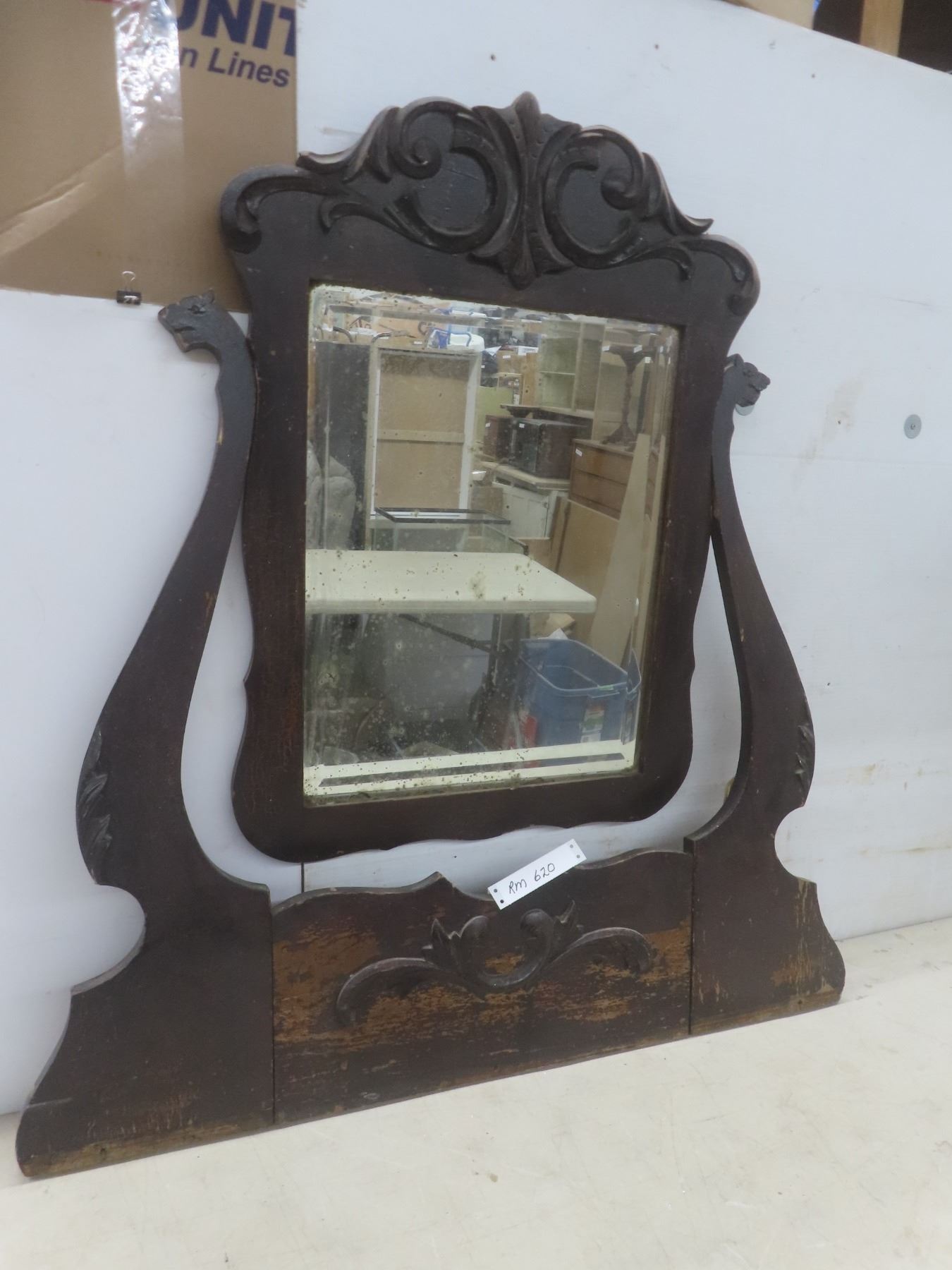 Lot 620 Antique Wood Framed Bevelled Mirror for Dresser, 38" x 36"