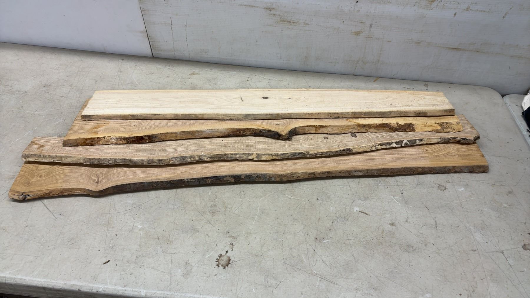 Lot 679 4 Pieces Oak Live Edge, Largest 43" x 6"
