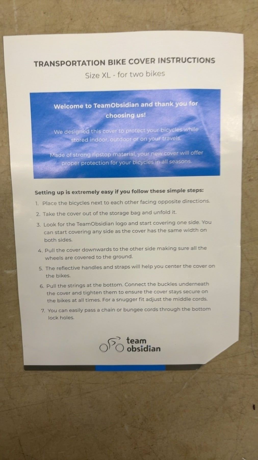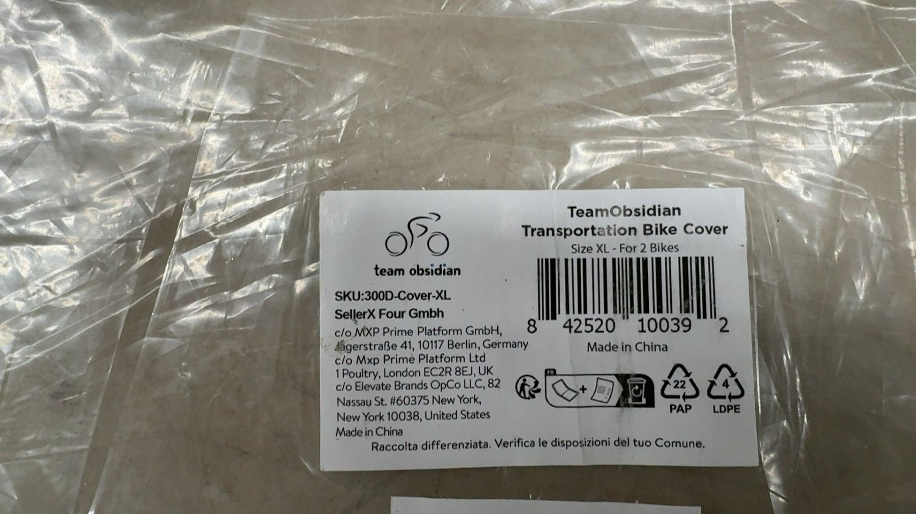 Lot 809 New Team Obsidian Transportation Bike Cover, Size XL, Fits 2 Bikes