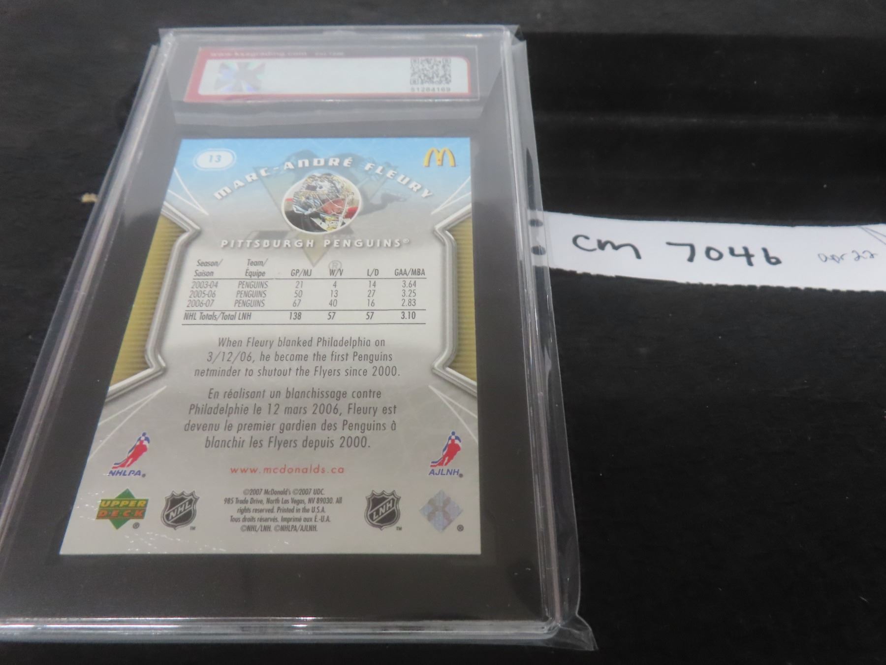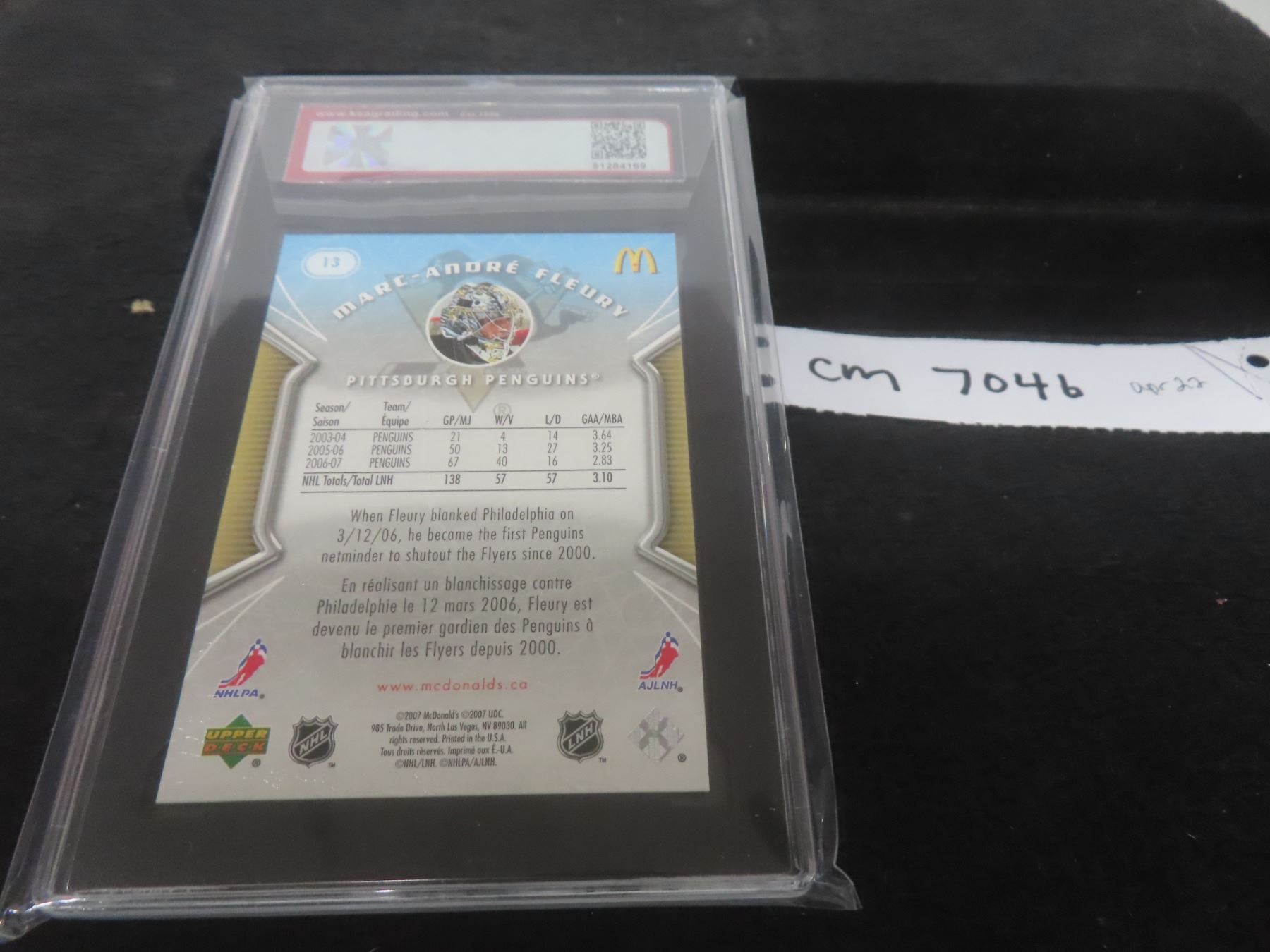 Lot 704b Graded Marc-André Fleury Card