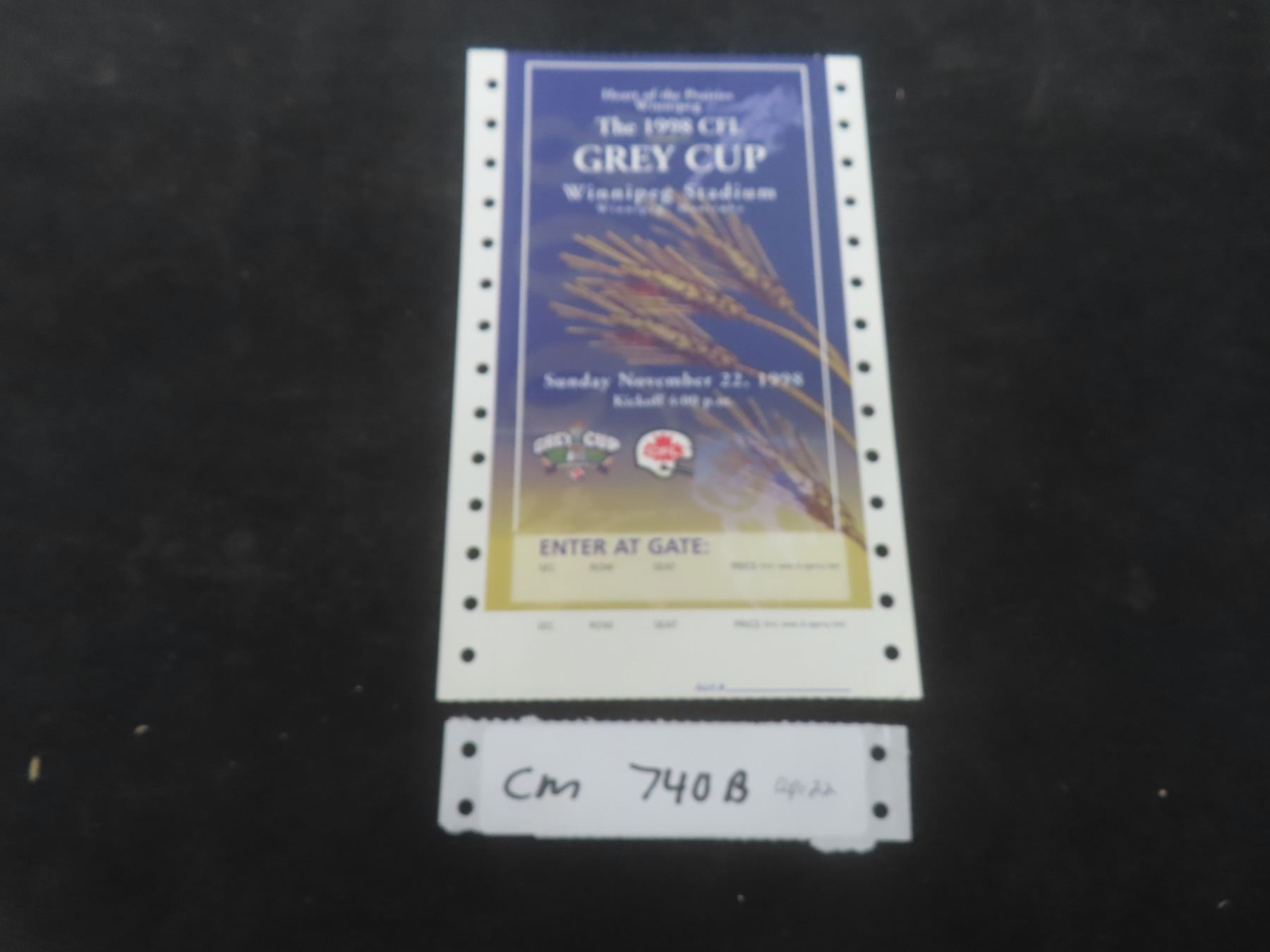 Lot 740b Unprinted 1998 Grey Cup Ticket