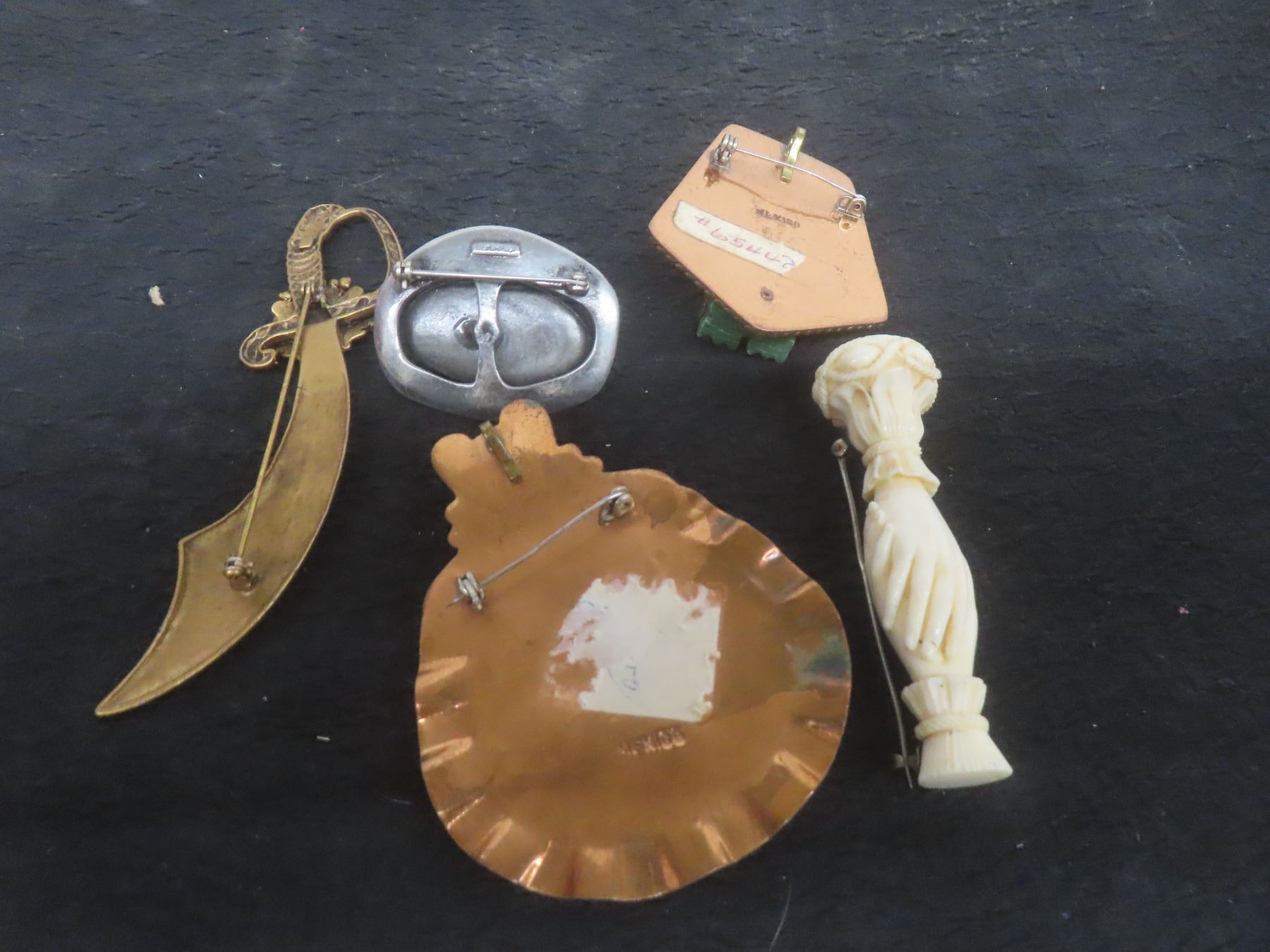 Lot 410b 5 Fashion Brooches, 2 Copper Style