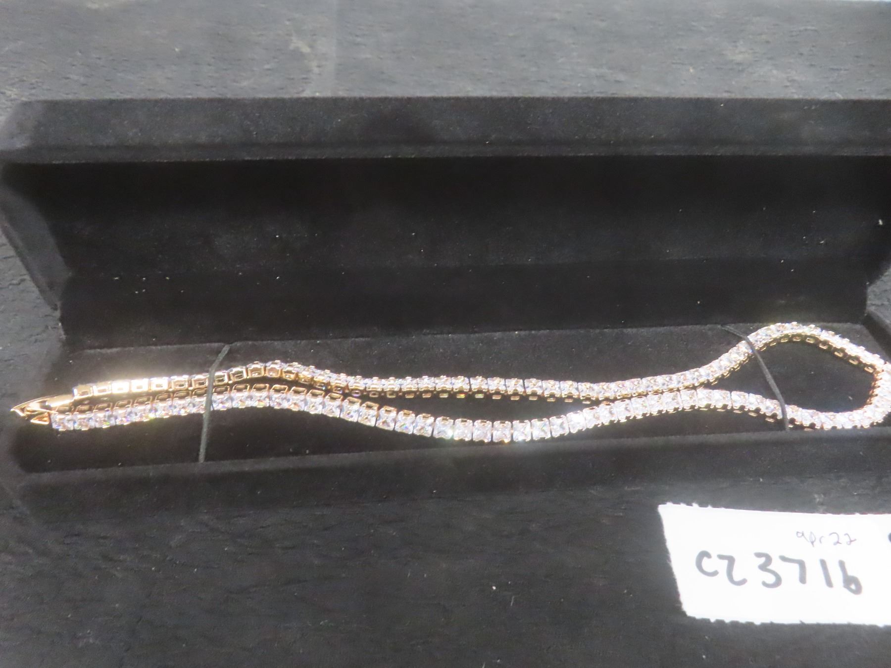 Lot 371b New 18K Gold Plated 4.0mm Princess Cut CZ Tennis Necklace, 18"