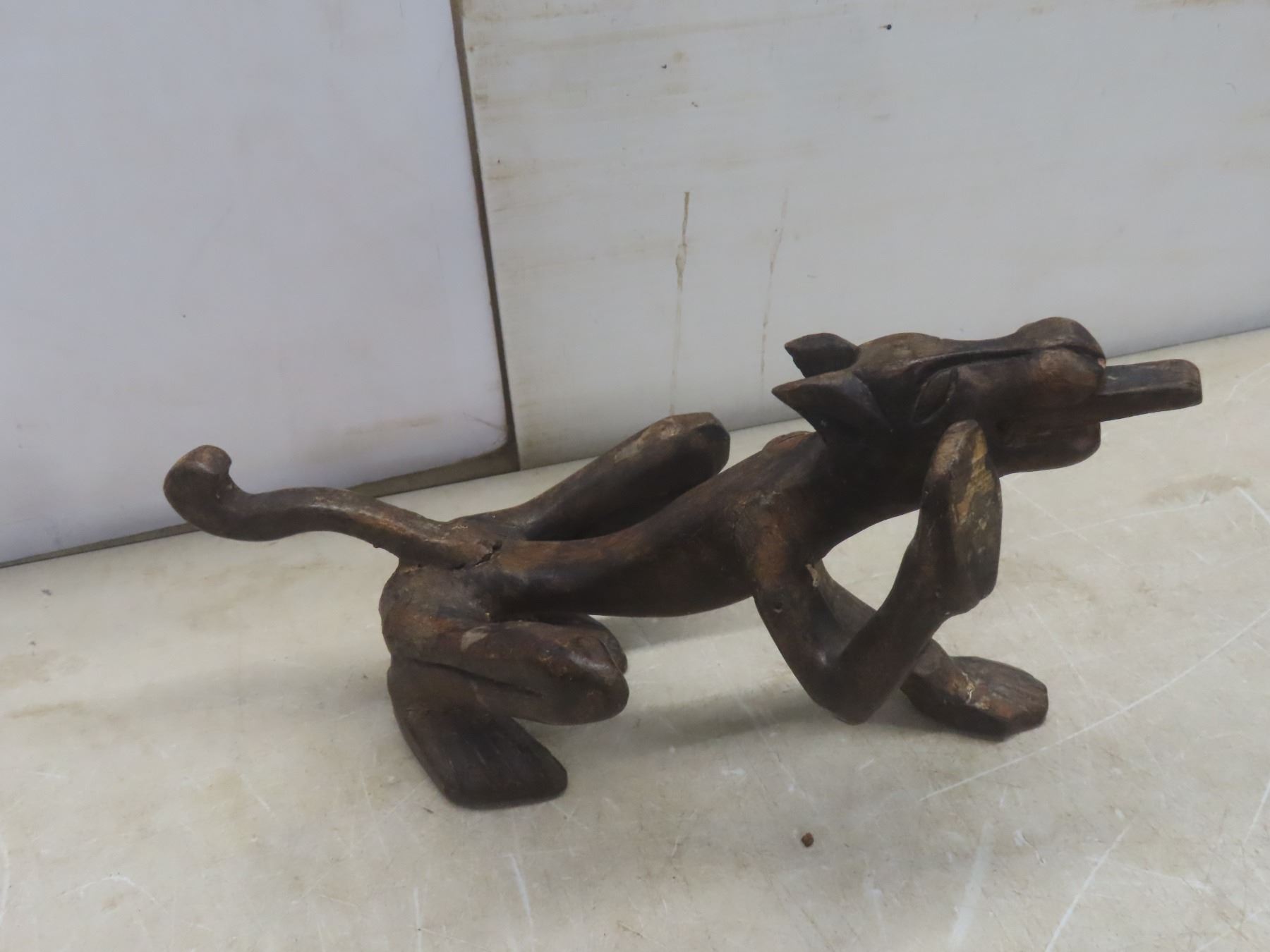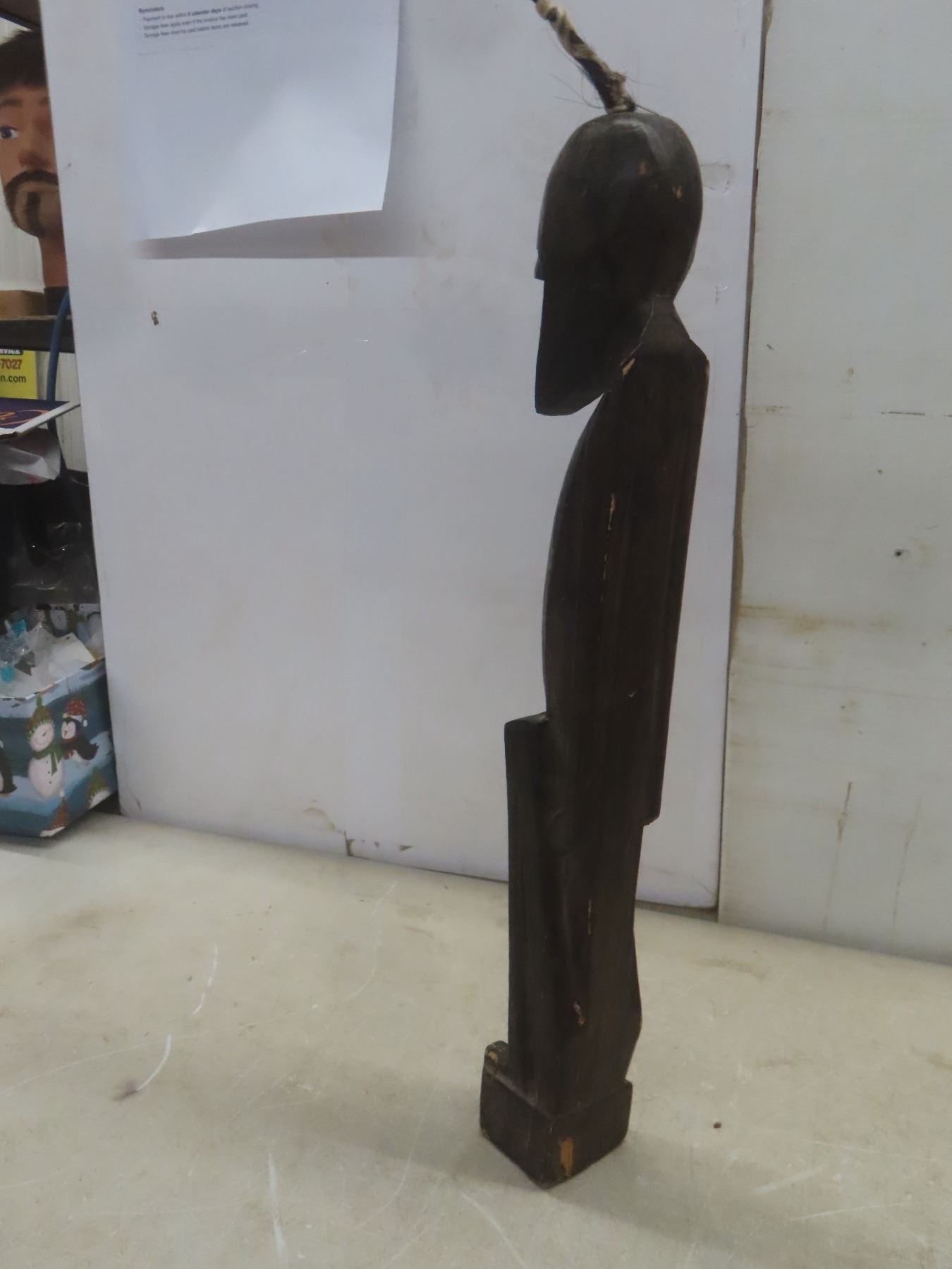Lot 952 Box of Wooden Carvings Including Carved Head by LGP-Lourde, Tallest 19-1/2"