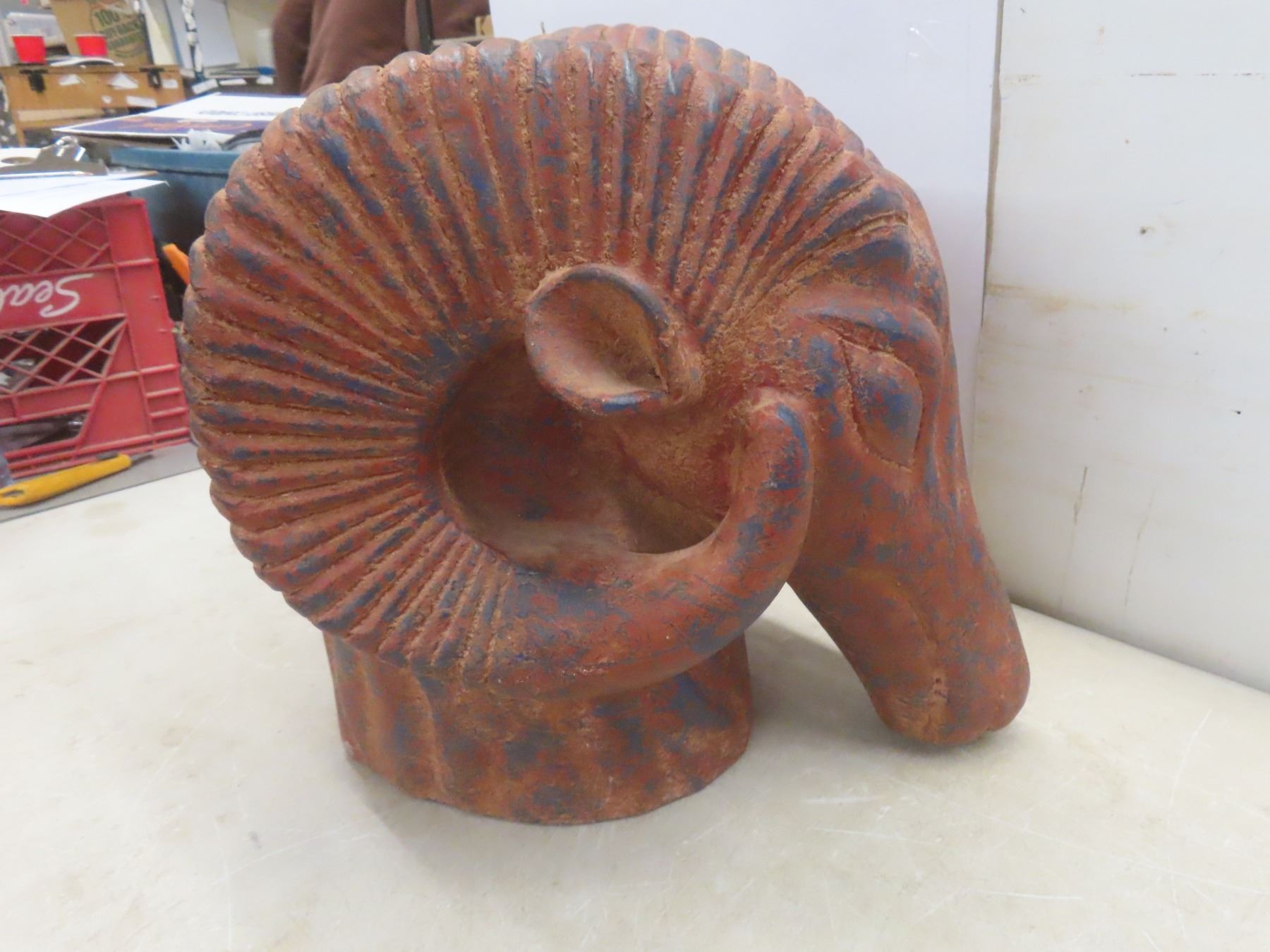 Large 16" Terra Cotta Clay Ram's Head