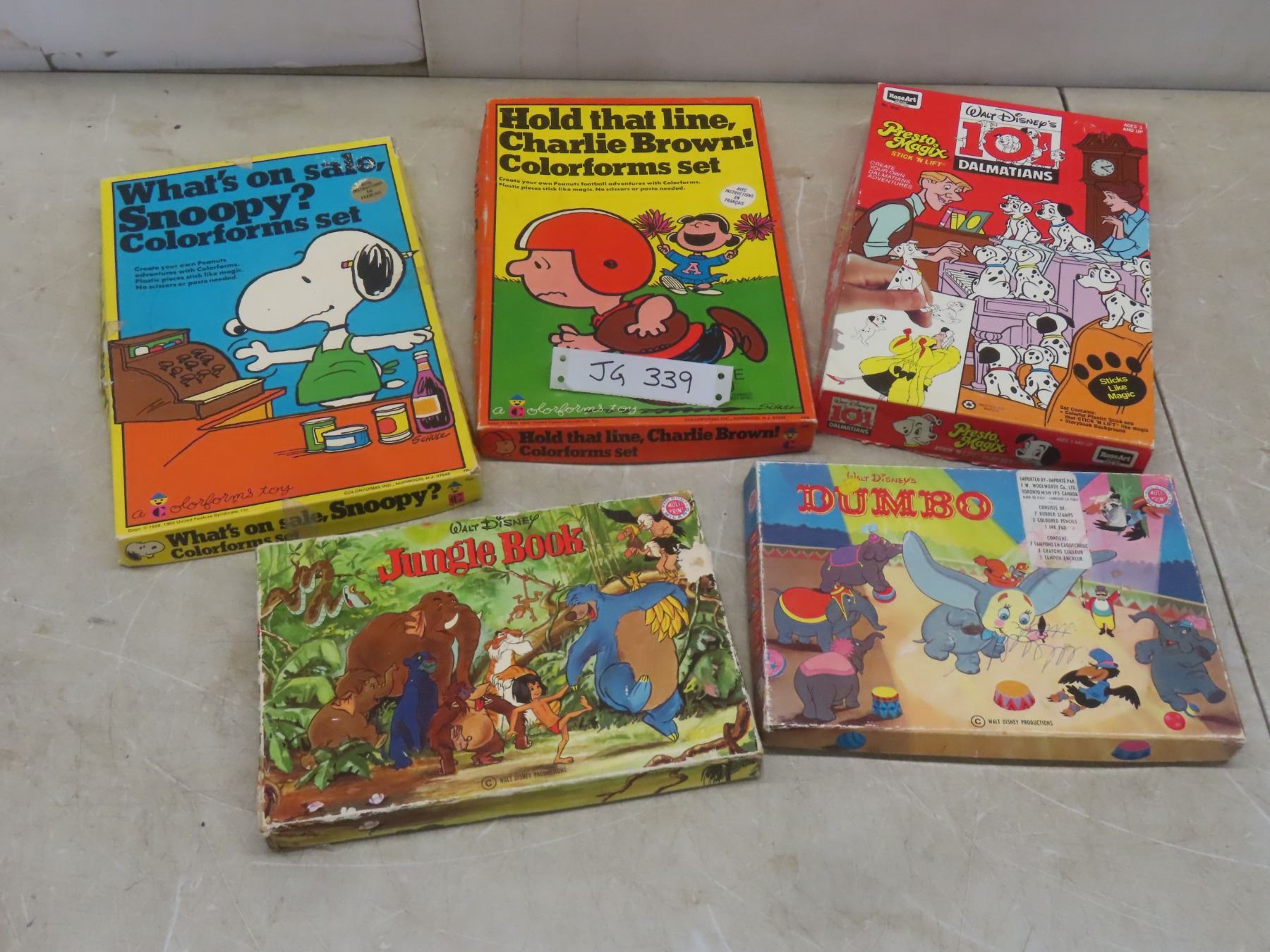 Lot 959 3 Colorforms – Snoopy, Charlie Brown, 101 Dalmatians, and 2 Walt Disney Stamp Sets