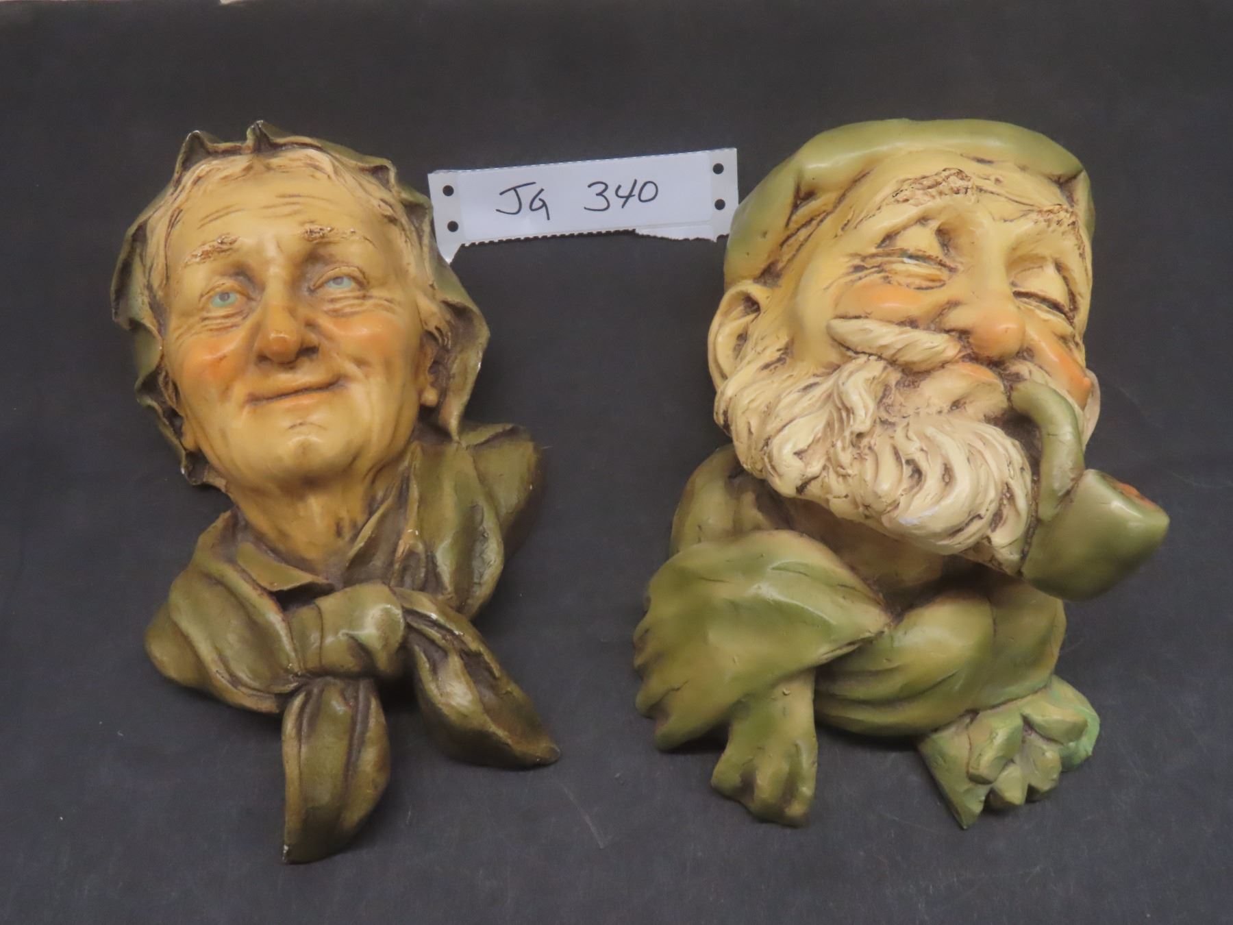 Lot 960 Vintage Devonware Chalkware Heads Wall Hanging – Grandma and Grandpa Figures, Nice Condition