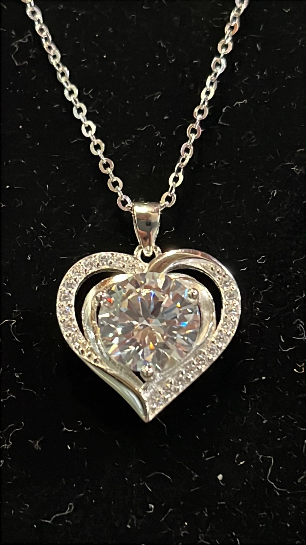Lot 174 *NEW* .925 SILVER 3CT SIMULATED DIAMOND (CZ) HEART HALO NECKLACE: 16" - 18" LONG