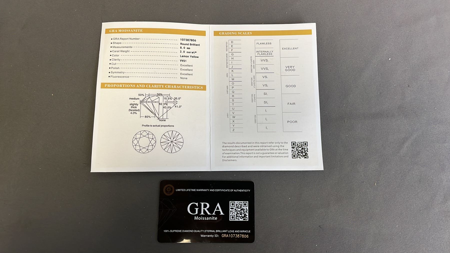 Lot 185 *NEW* 2 CT LEMON YELLOW MOISSANTE LAB DIAMOND: ROUND BRILLIANT CUT, VVS1, GRA REPORT