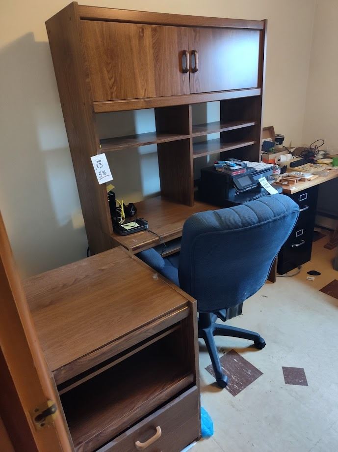 Lot 396H OFFICE SET / DESK , SIDE UNIT & BLUE CHAIR