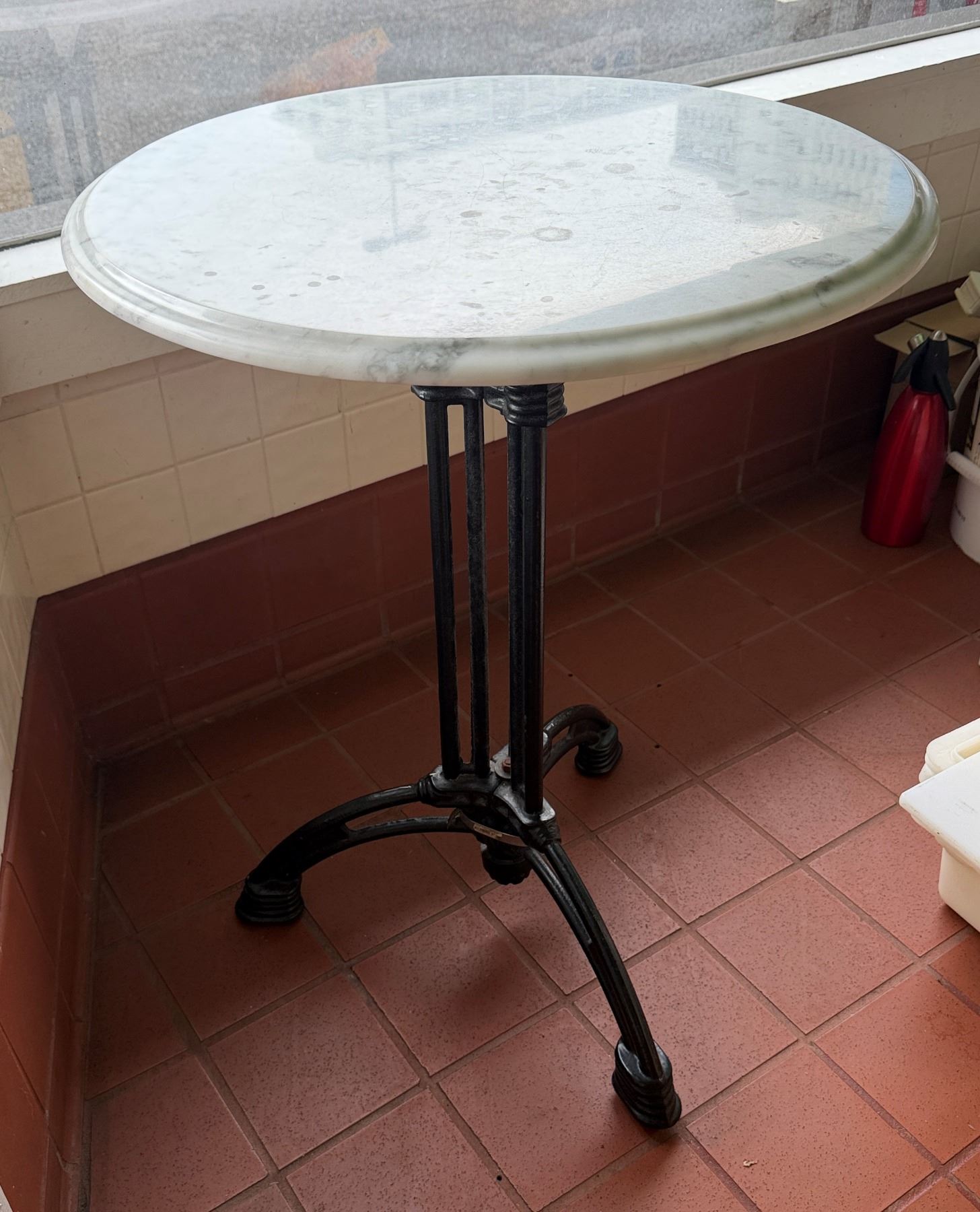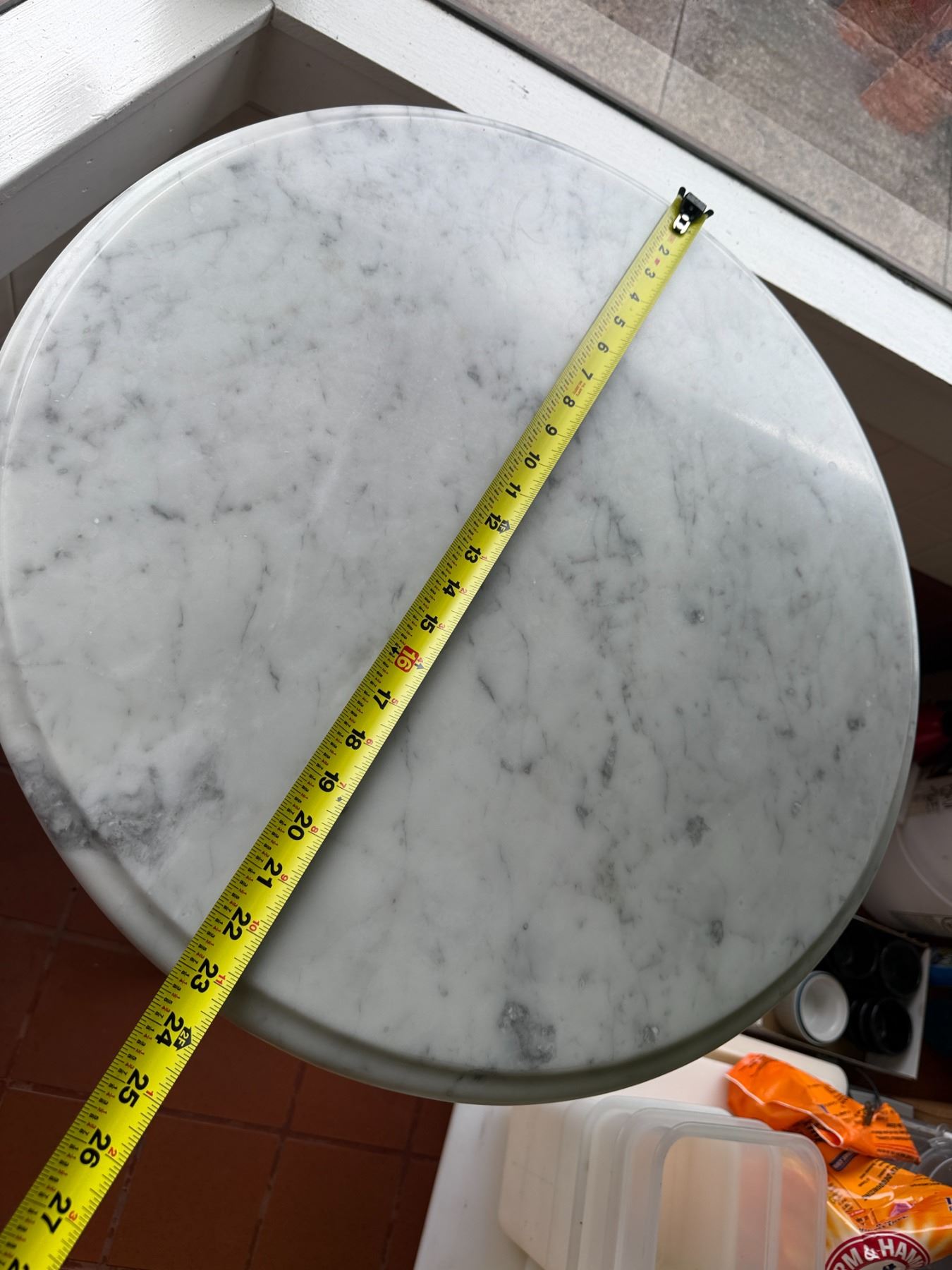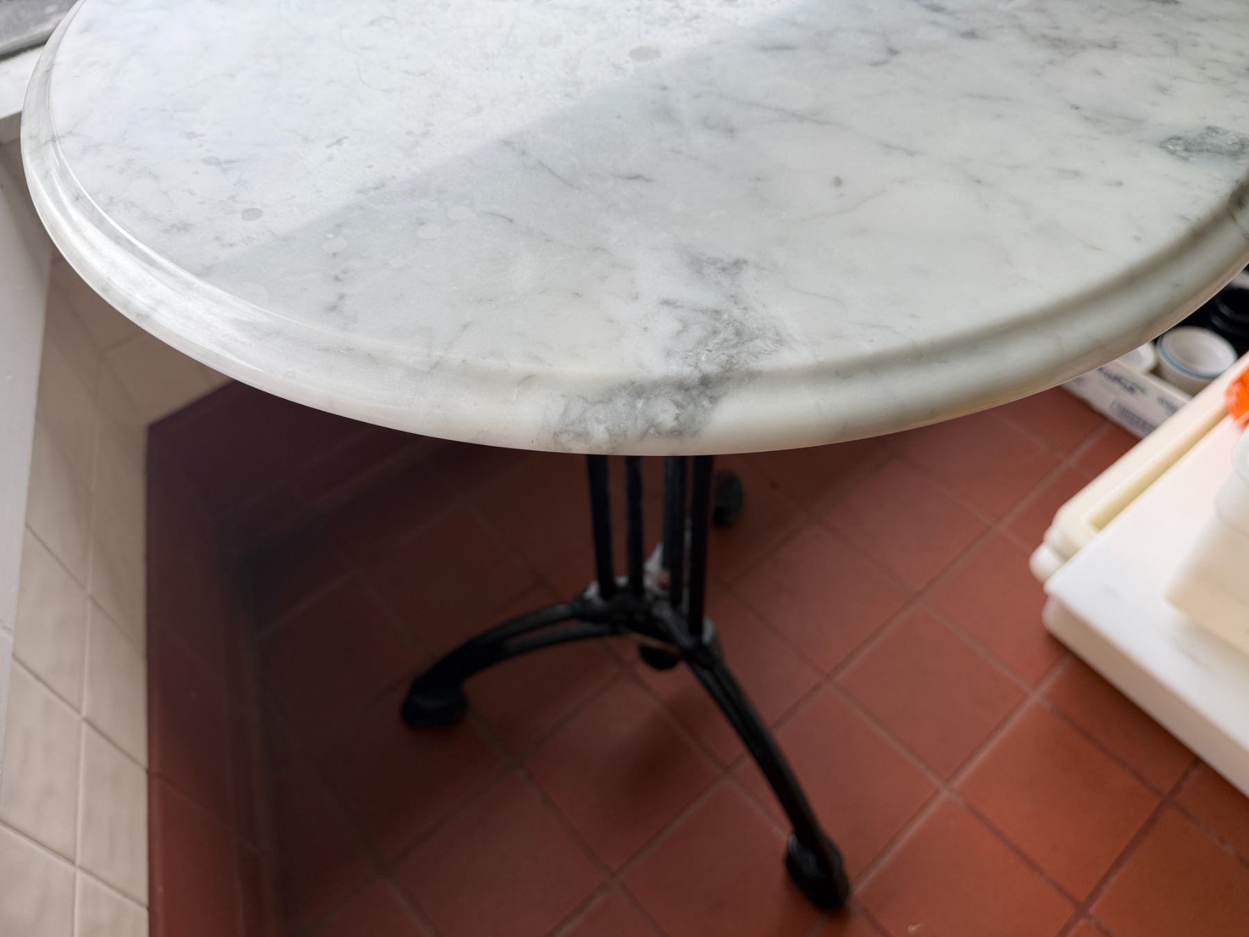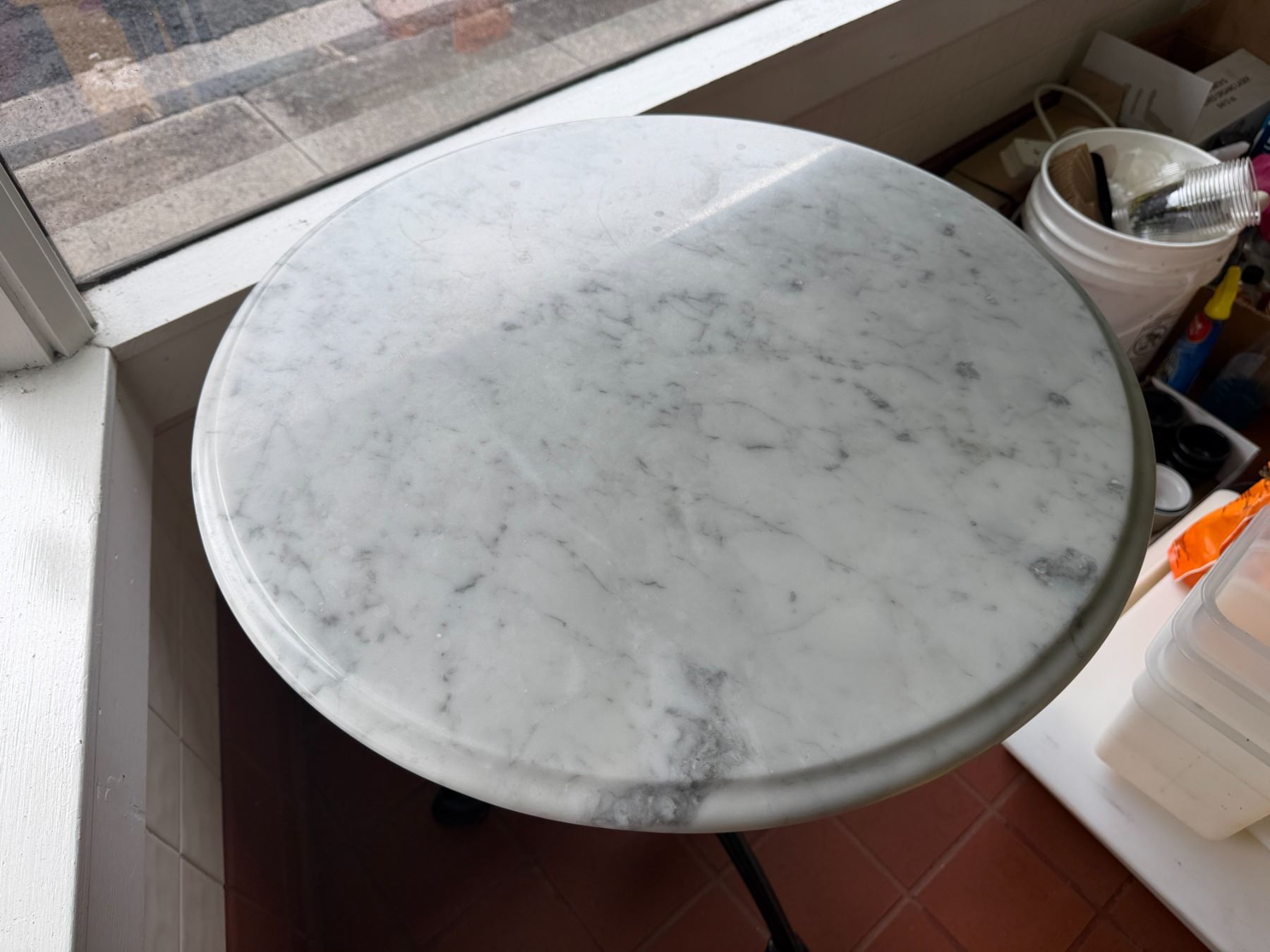 Lot 14 Carrara Marble Table w/ Bruni 3 Table Base 23.5" Dia, 30"H