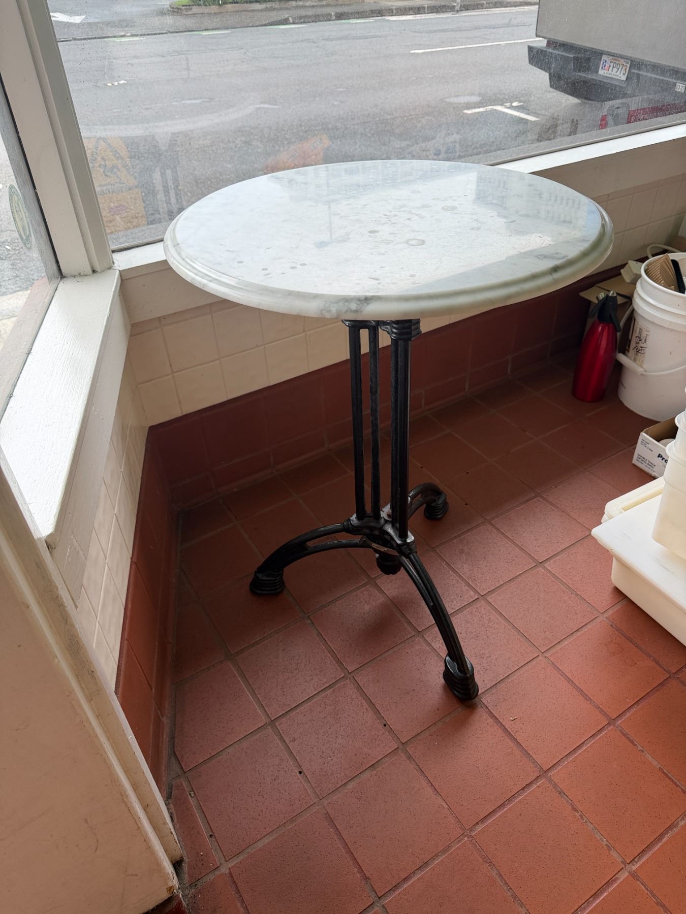 Carrara Marble Table w/ Bruni 3 Table Base 23.5" Dia, 30"H