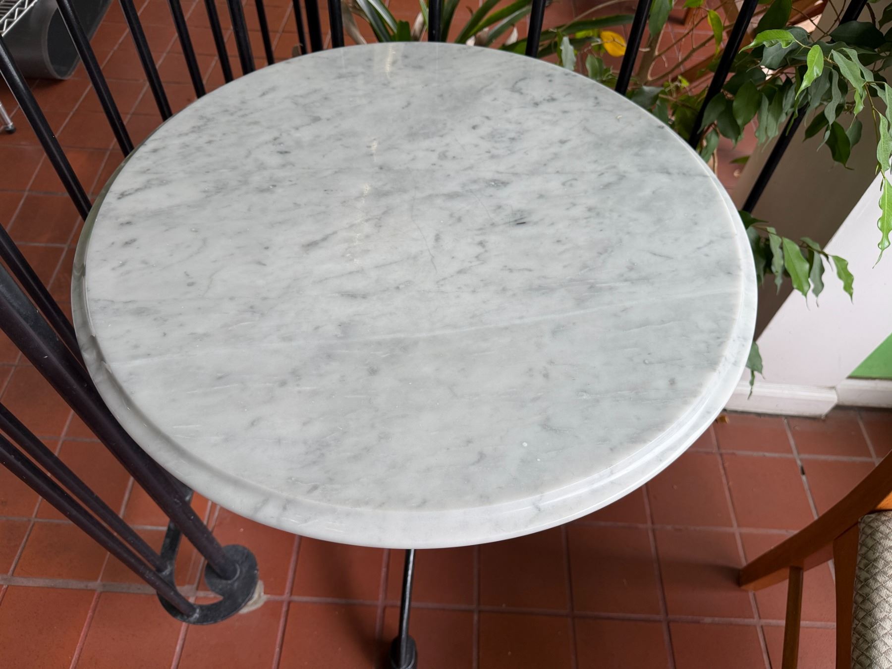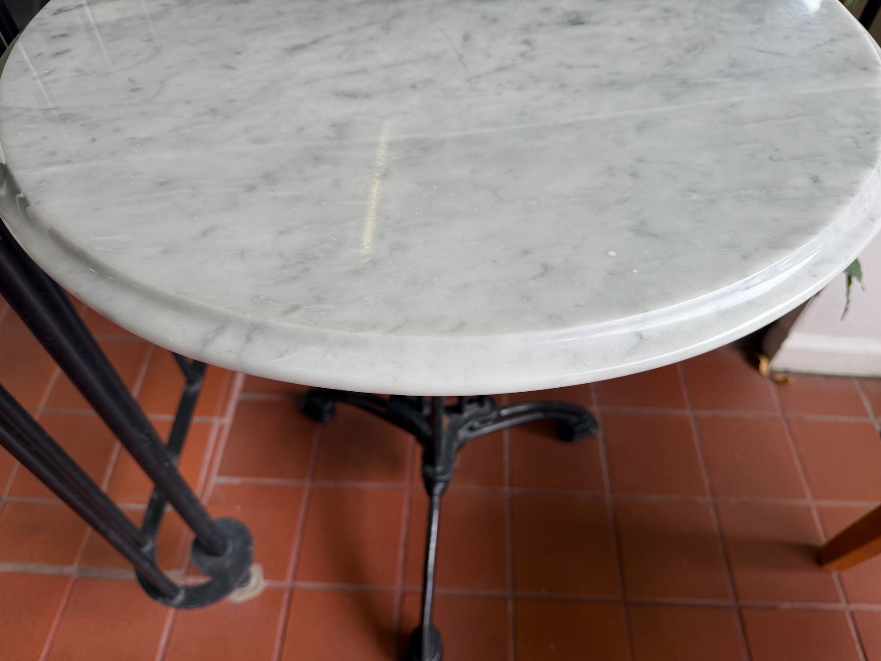 Lot 16 Carrara Marble Table w/ Bruni 3 Table Base 23.5" Dia, 30"H