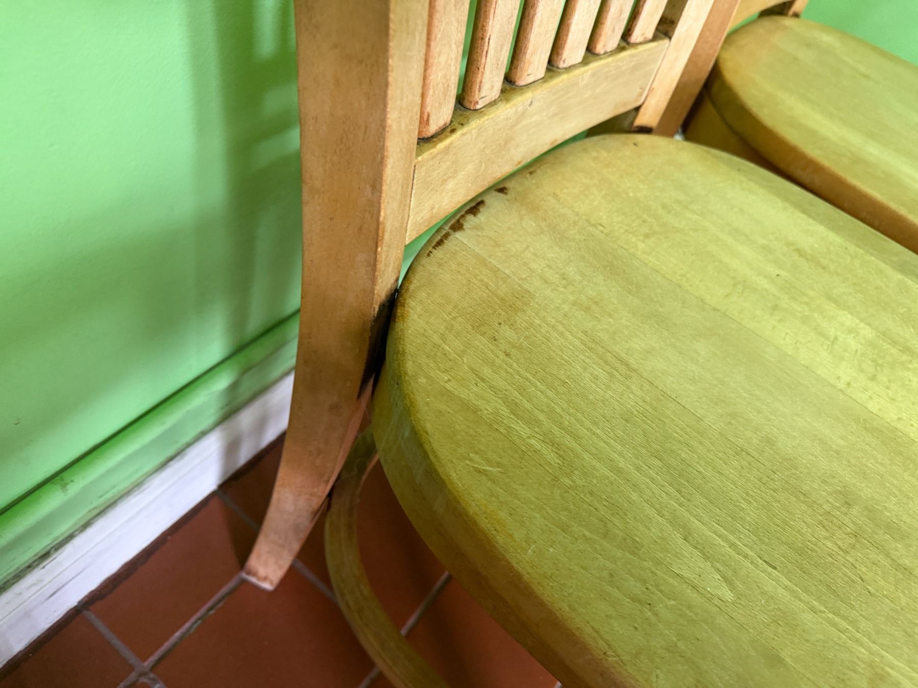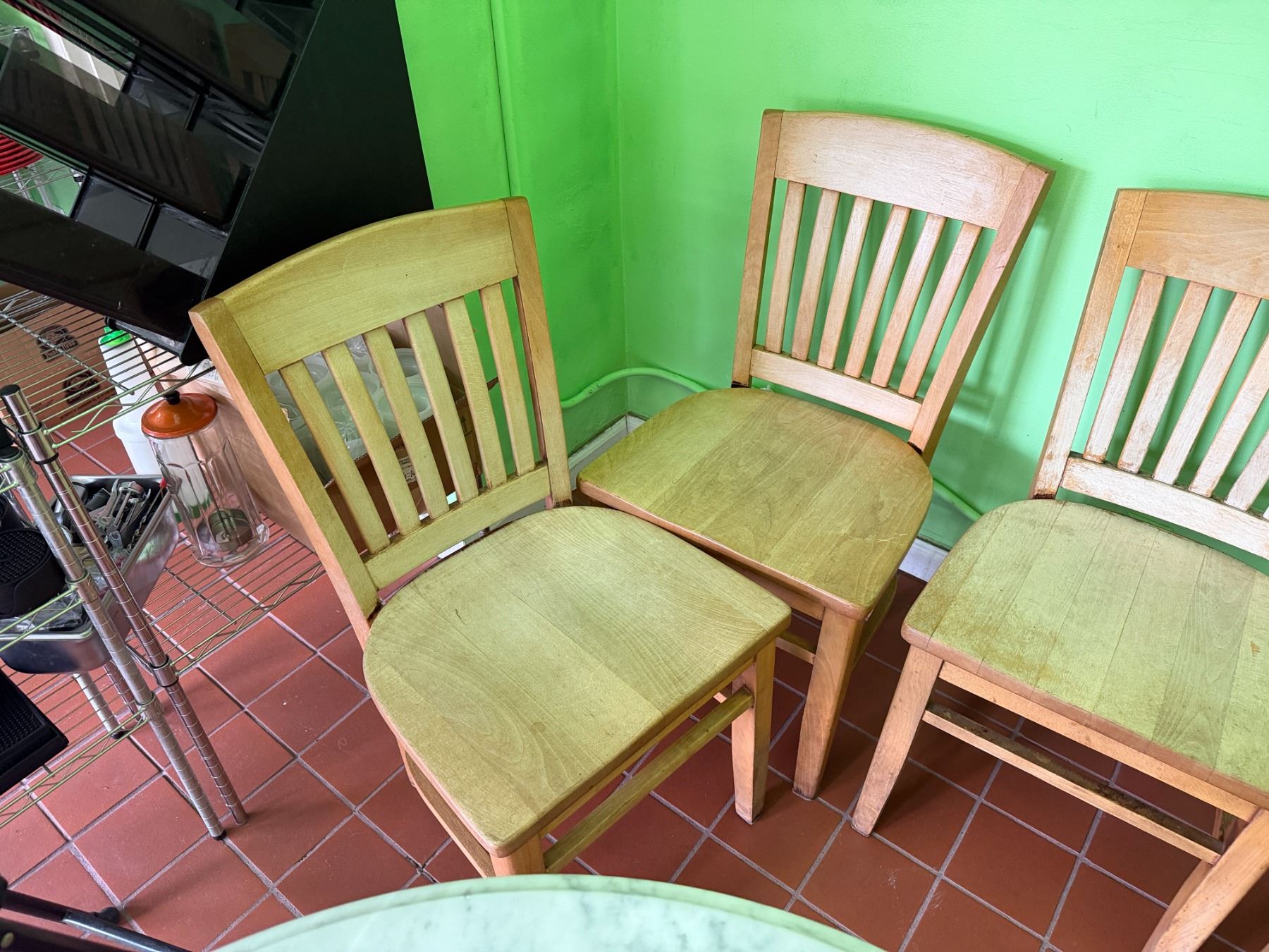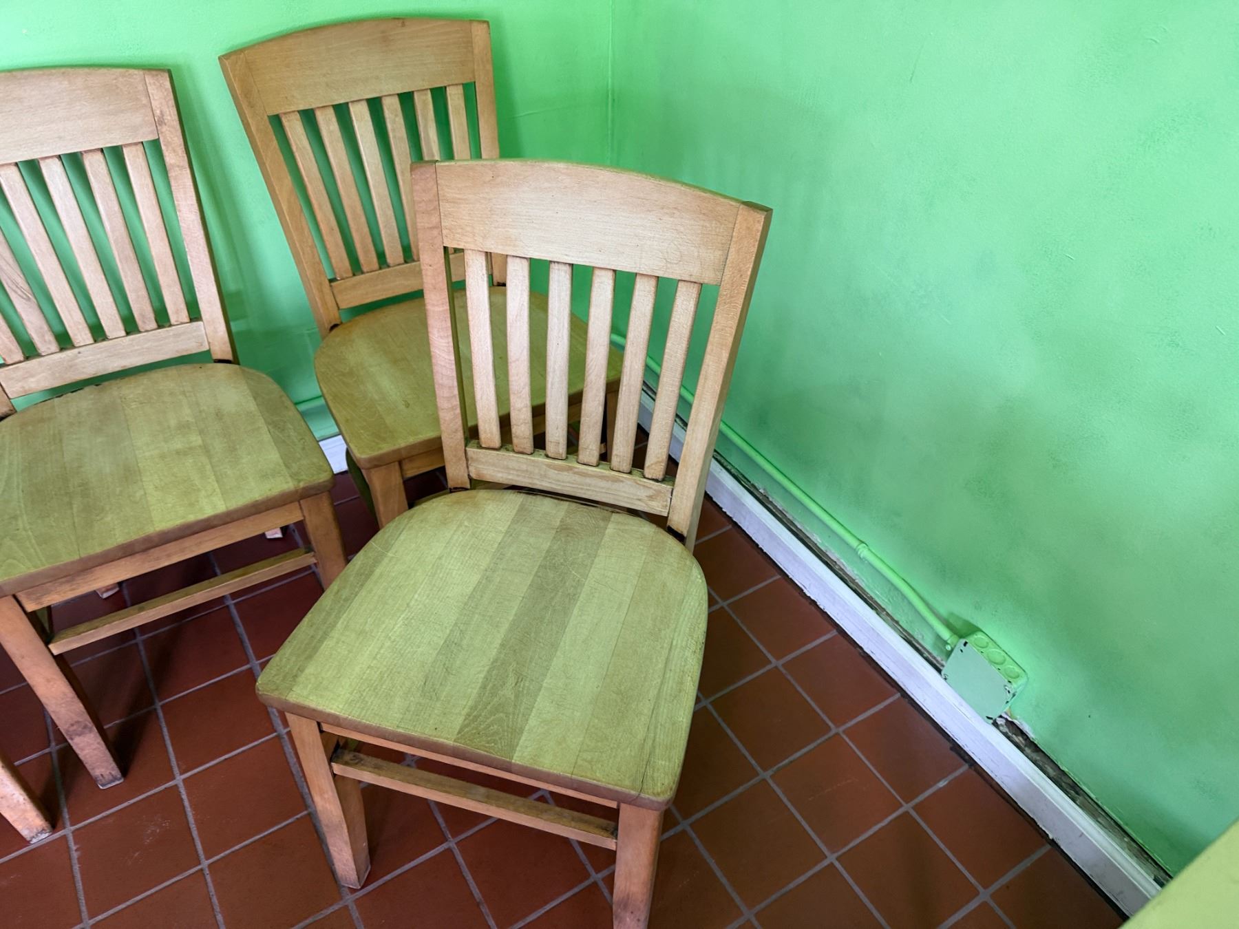 Qty 6 Wooden Chairs w/ Slatted Backs 18" x 16" x 34"H (some wobble)
