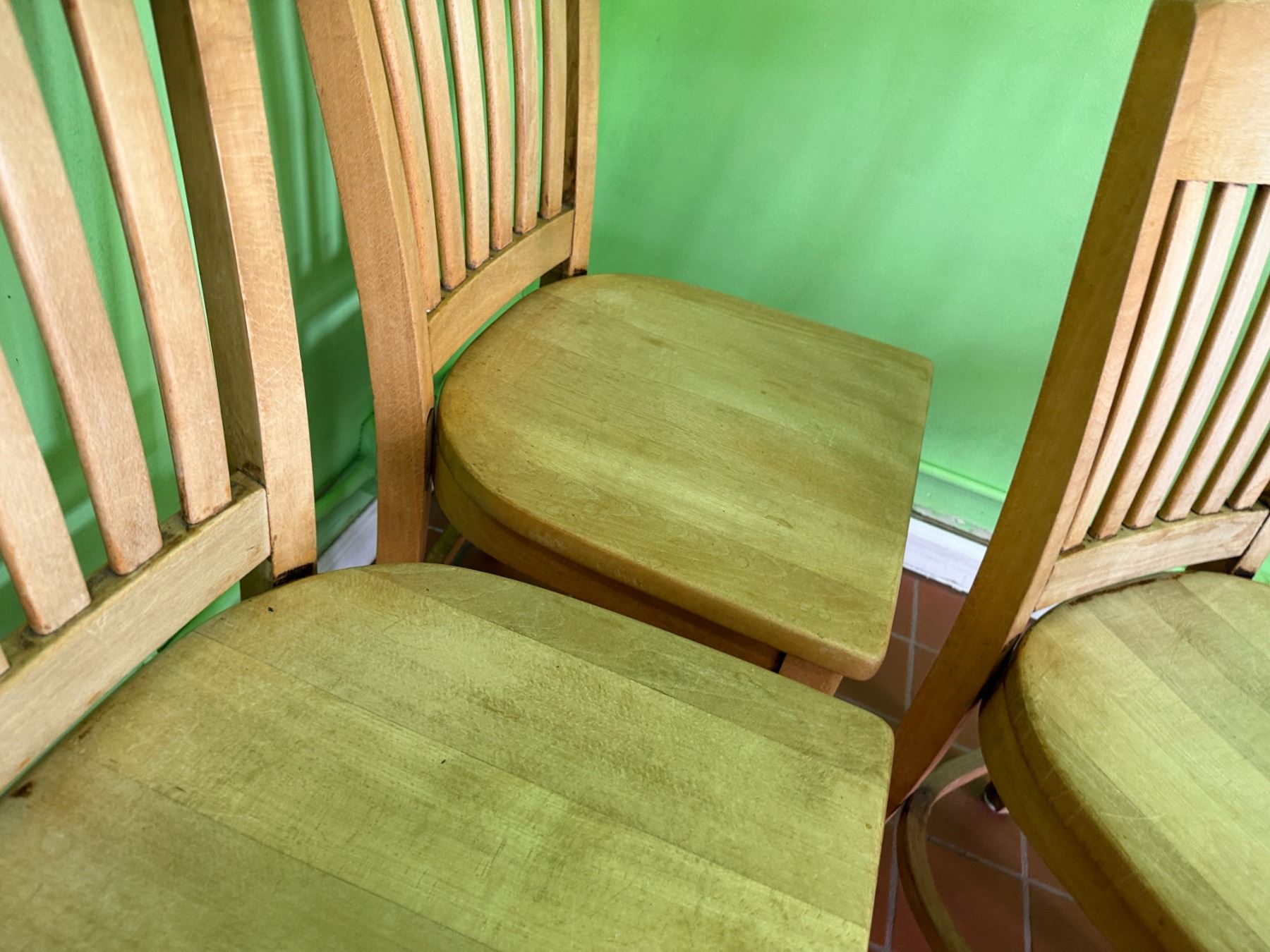 Lot 22 Qty 6 Wooden Chairs w/ Slatted Backs 18" x 16" x 34"H (some wobble)