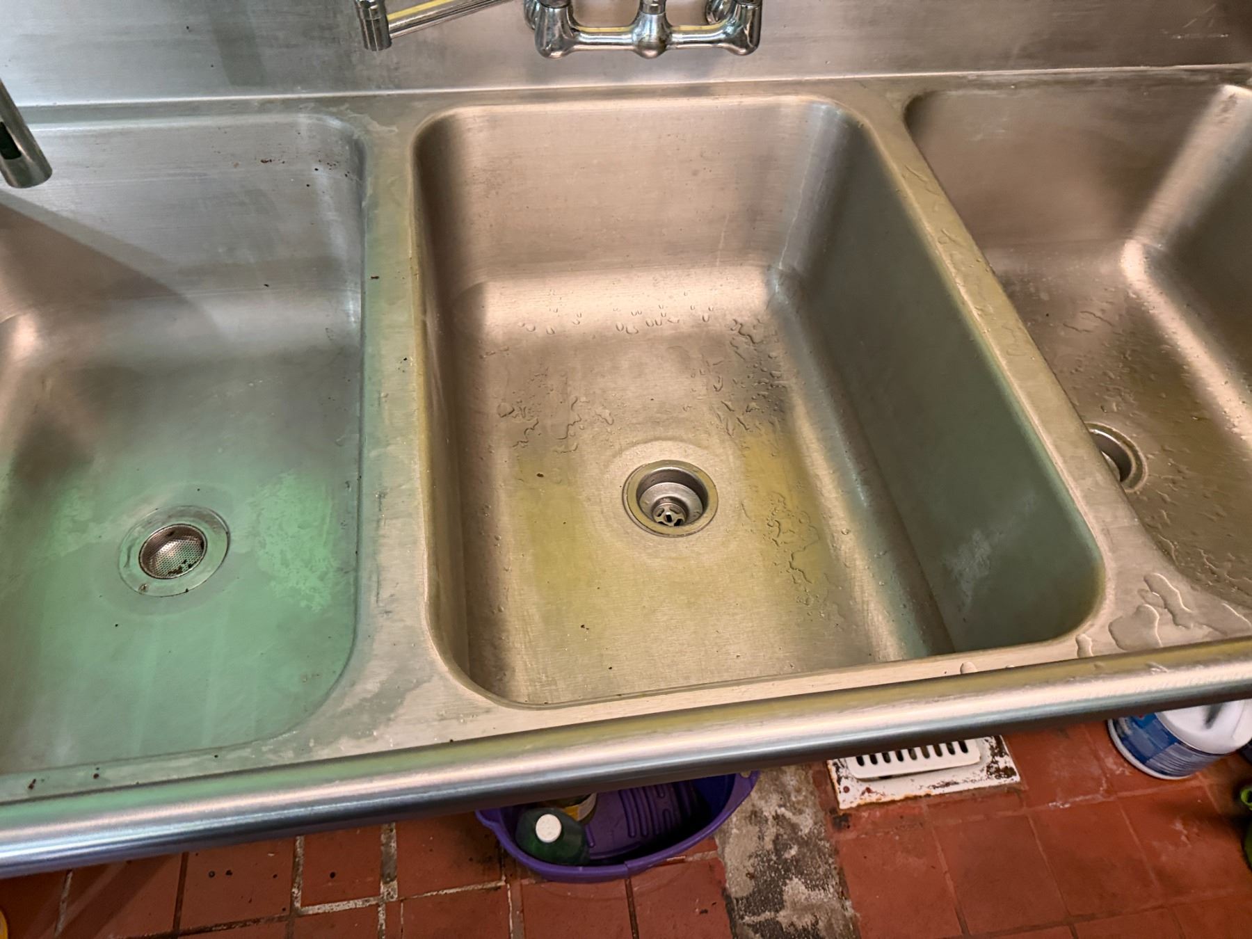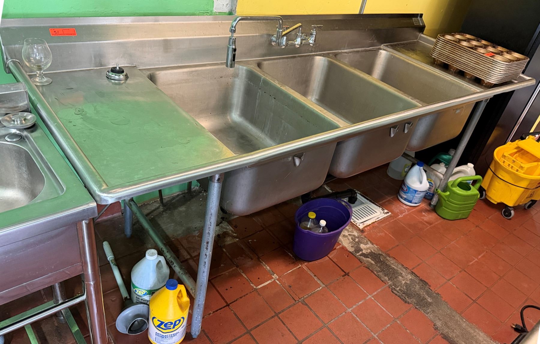 Lot 51 Advance Tabco T9-83-60-18RL 3-Basin Sink w/ Dual Drainboards & Faucet 98" x 33" x 37"H
