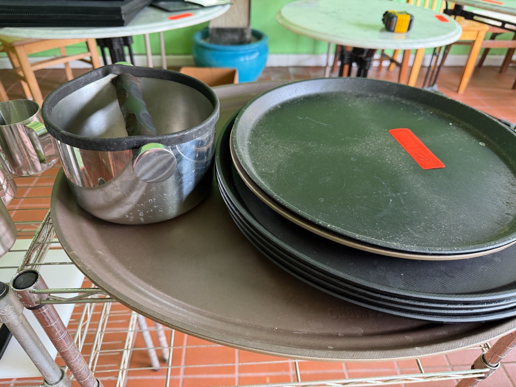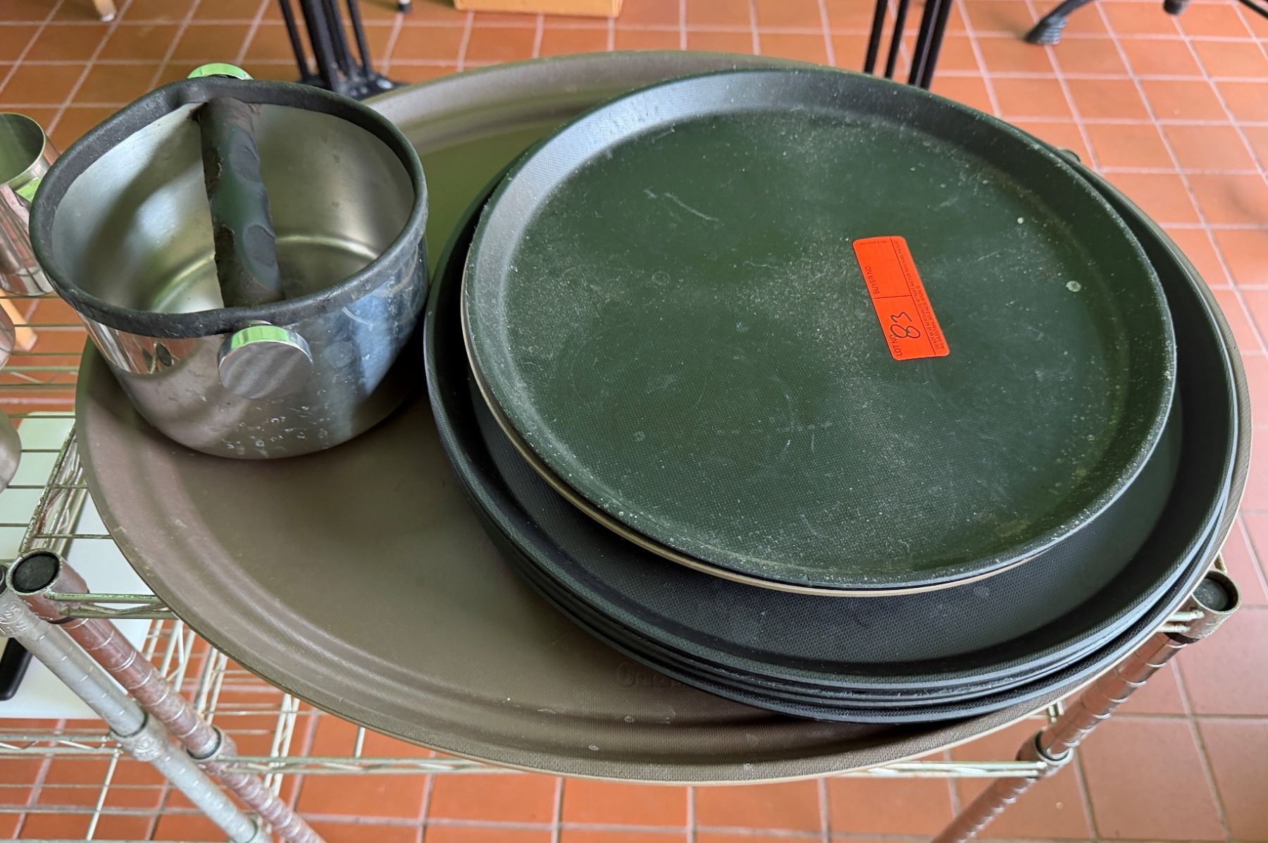 Lot 83 Multiple Round Trays, Misc Sizes & Metal Espresso Knock Box
