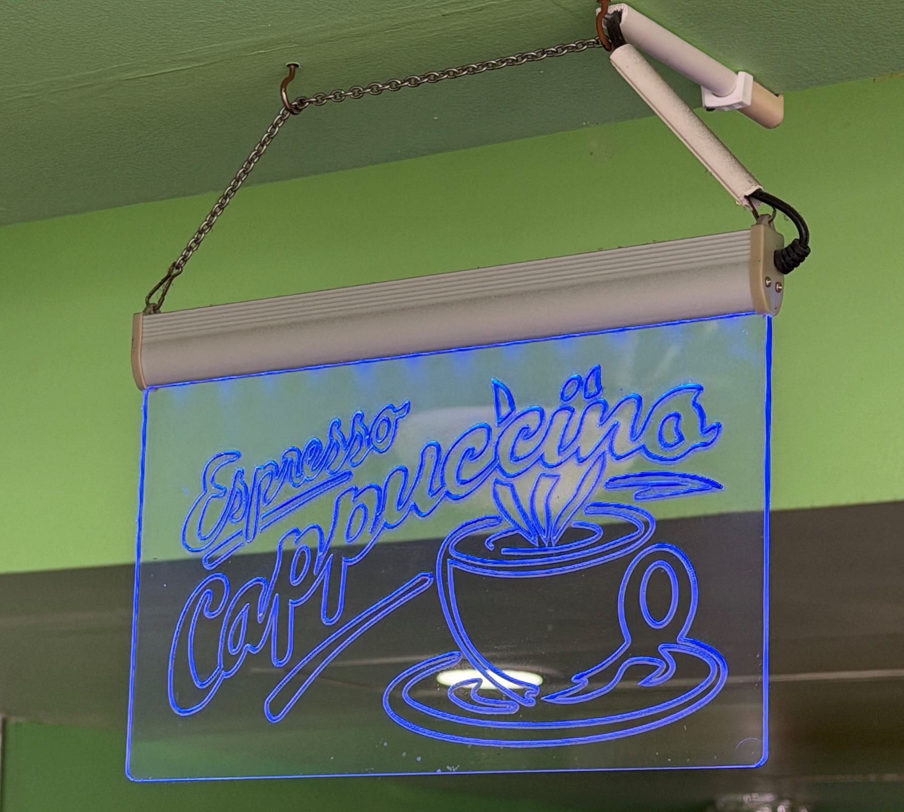 Espresso Cappuccino Sign w/ Ceiling Mount