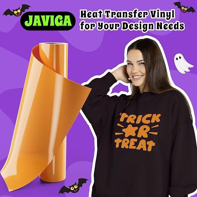 - Javiga orange heat transfer vinyl, 12" x 35ft orange iron on vinyl, htv compatible with cricut, htv heat transfer for shirts