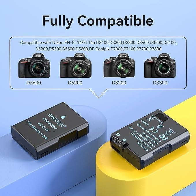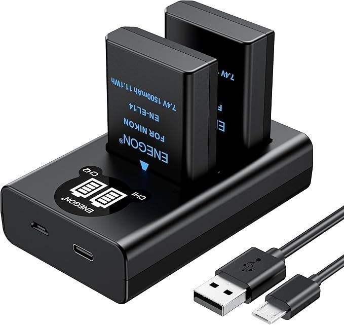 - EN-EL14/EL 14a Replacement Battery 1500mAh(2 Pack) and Smart LED Dual Charger Kit for Nikon EN-EL14/14a and Compatible with D3100, D3200, D3300, D3400, D3500, D5100, D5200, D5300, D5500, Coolpix P7000