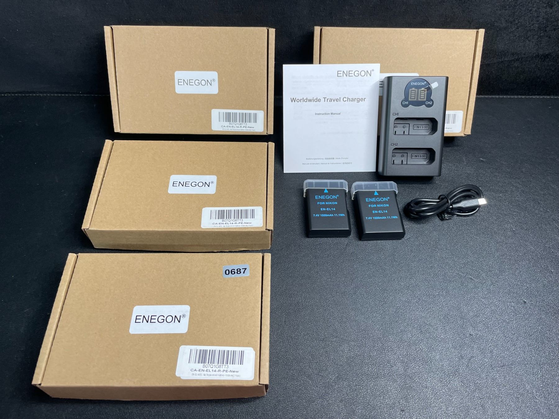 Lot 687 Lot of 4 Smart LED Dual Charger Kits for Nikon with 2 Replacement Batteries (Each) - New