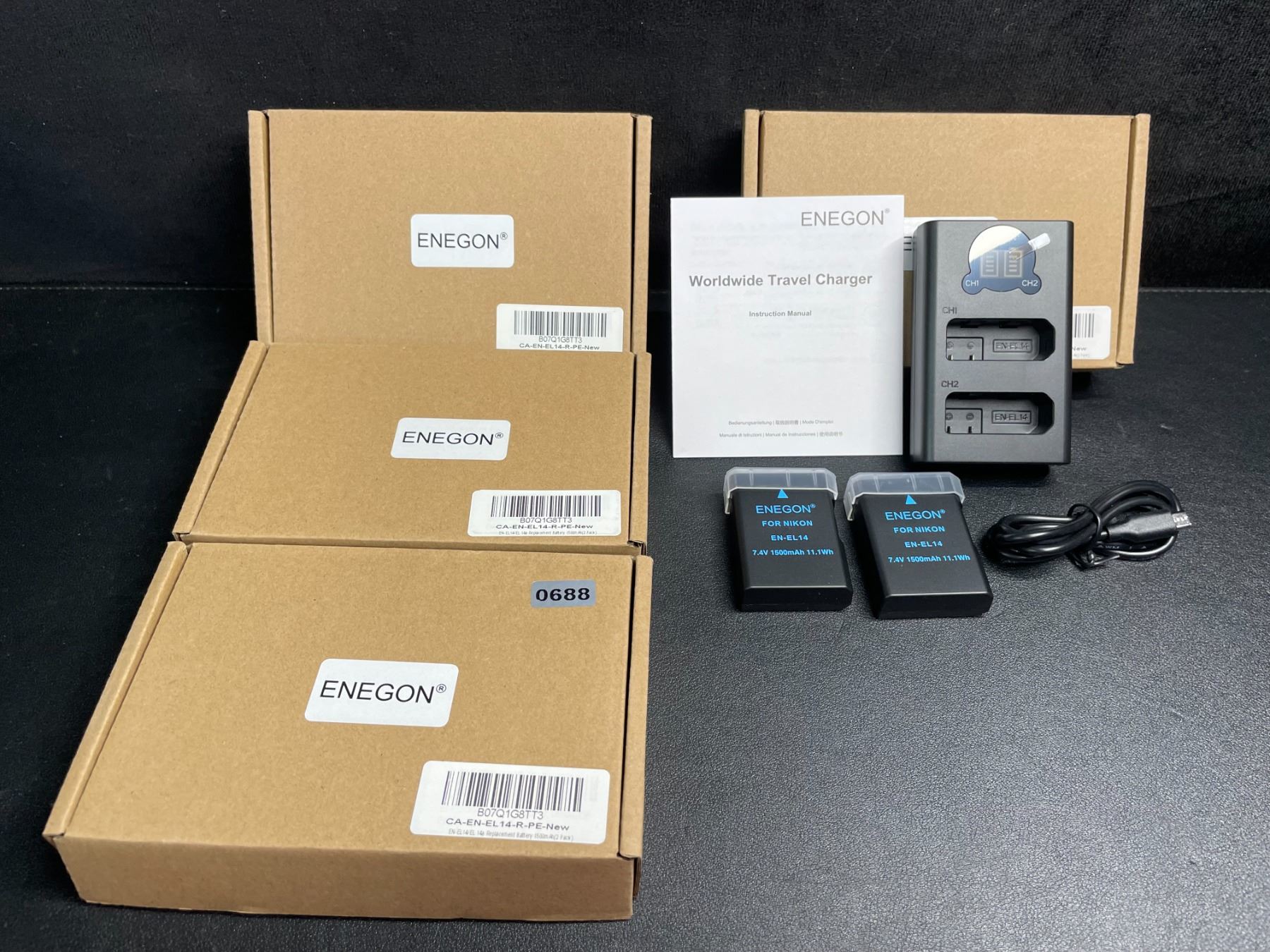 Lot 688 Lot of 4 Smart LED Dual Charger Kits for Nikon with 2 Replacement Batteries (Each) - New