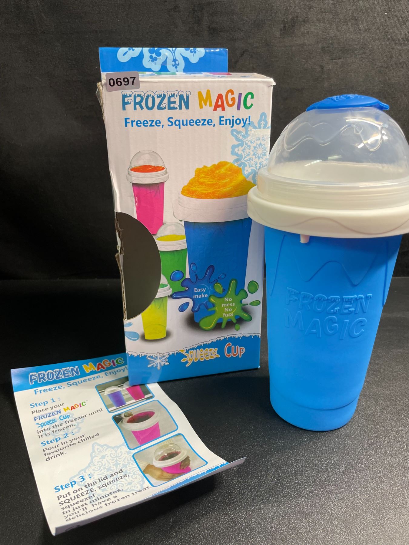 Lot 697 Frozen Magic Slushy Maker Cup (Blue) Freeze, Squeeze, Enjoy! Slushie Drink-Making Cup - New
