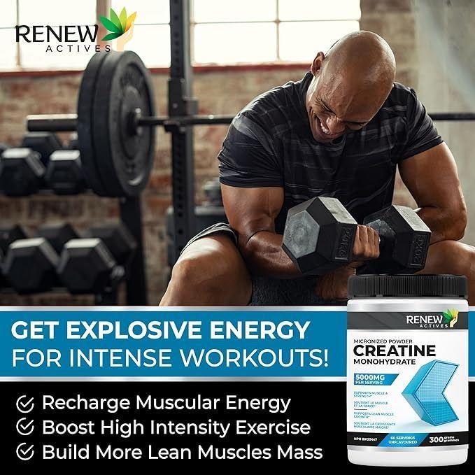 - RENEW ACTIVES Micronized Creatine Monohydrate – 100% Pure, Vegan & Keto-Friendly, 5000mg Per Serving – Supports Muscle Growth, Strength & Performance – Made in Canada – Unflavored, 60 Servings