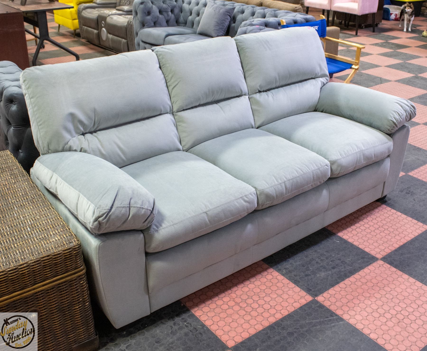 Lot 535 NEW ASSEMBLED LIGHT BLUE FABRIC SOFA