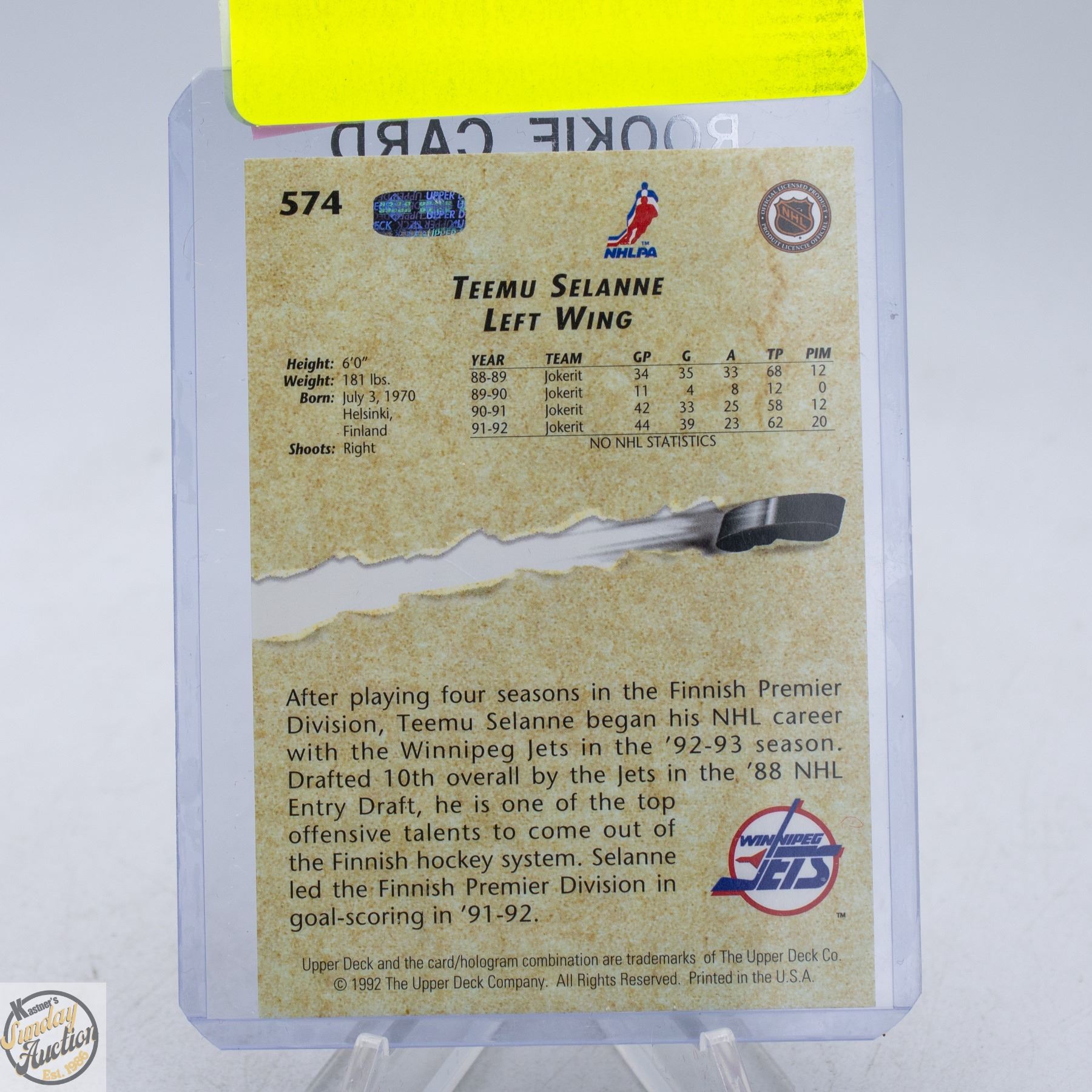 Lot 646 TEEMU SELANNE YOUNG GUNS ROOKIE UD