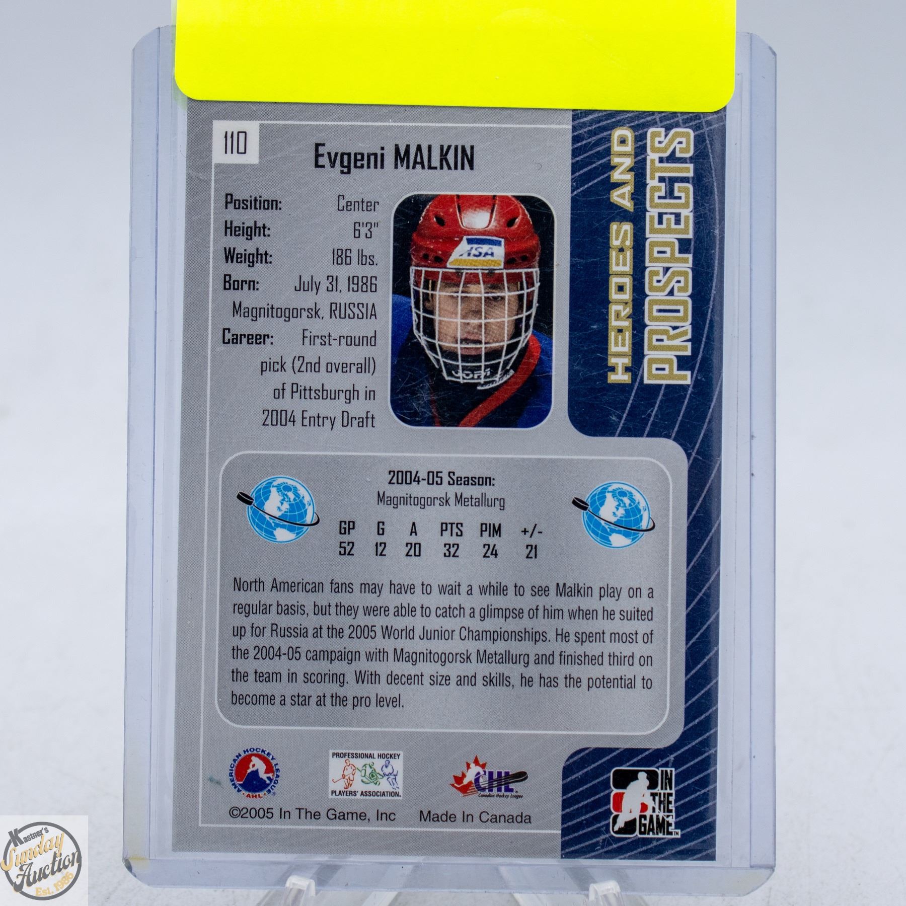 Lot 668 EVGENI MALKIN PRE-ROOKIE HEROES AND PROSPECTS