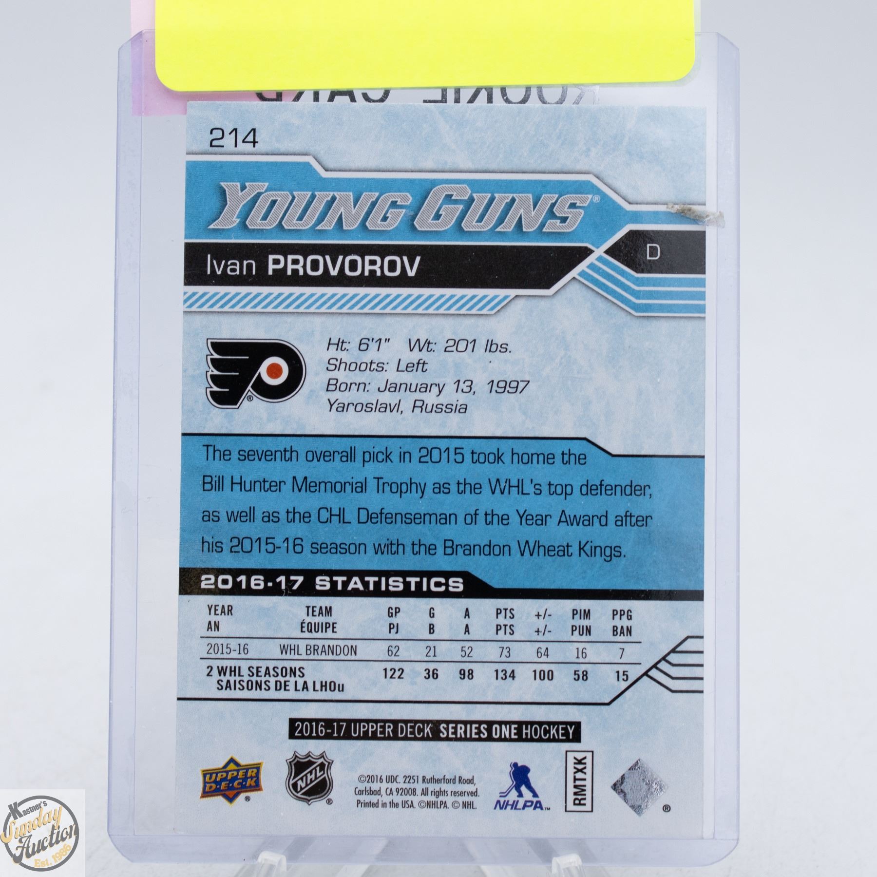 Lot 669 IVAN PROVOROV YOUNG GUNS ROOKIE UPPERDECK