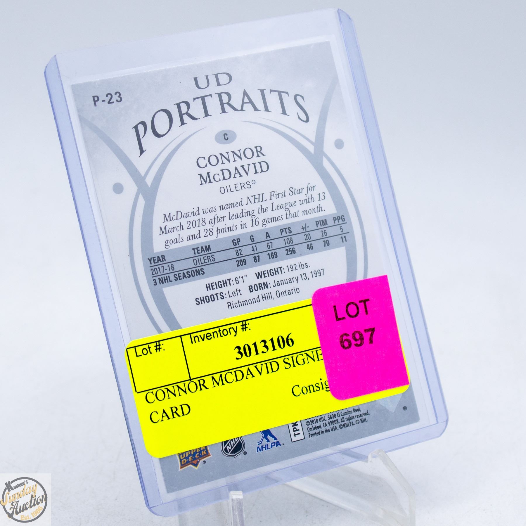 Lot 697 CONNOR MCDAVID SIGNED SPORTS CARD
