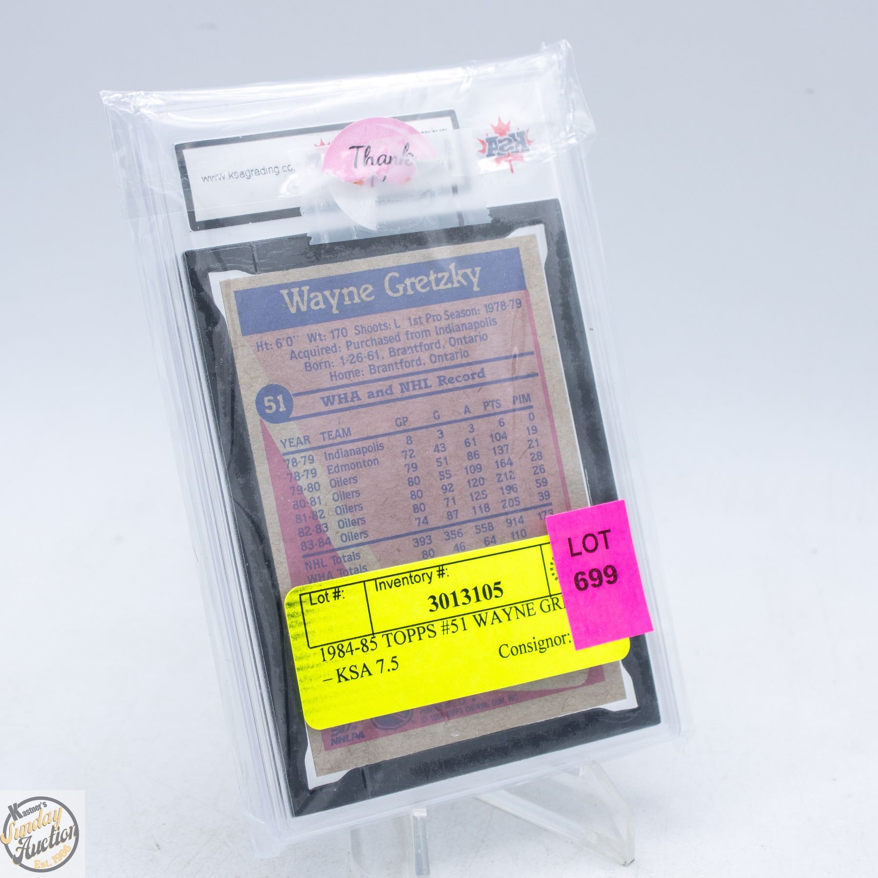 Lot 699 1984-85 TOPPS #51 WAYNE GRETZKY – KSA 7.5