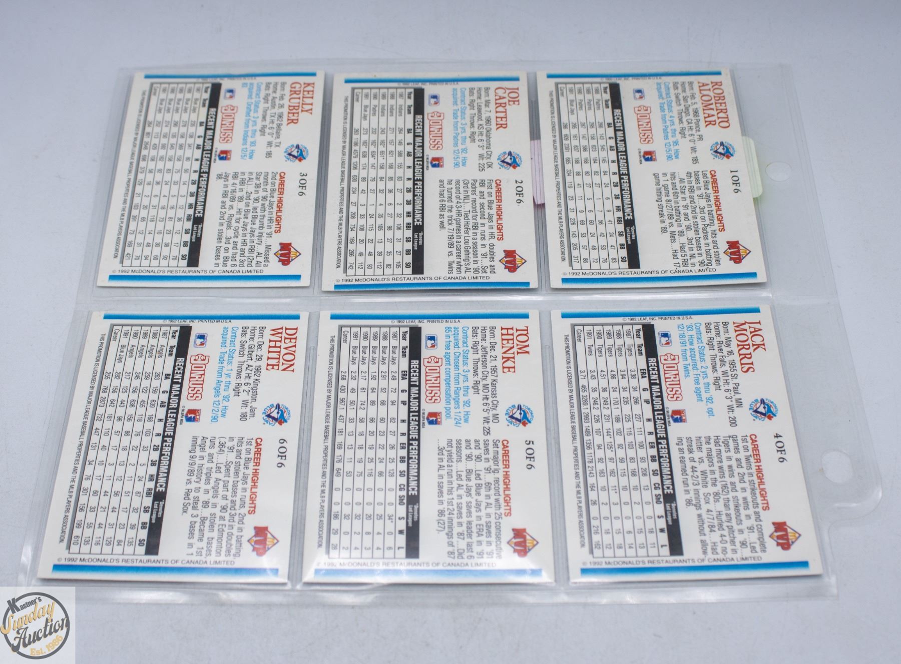 Lot 719 BLUE JAYS MVP SET 1-6 DONRUSS 1991
