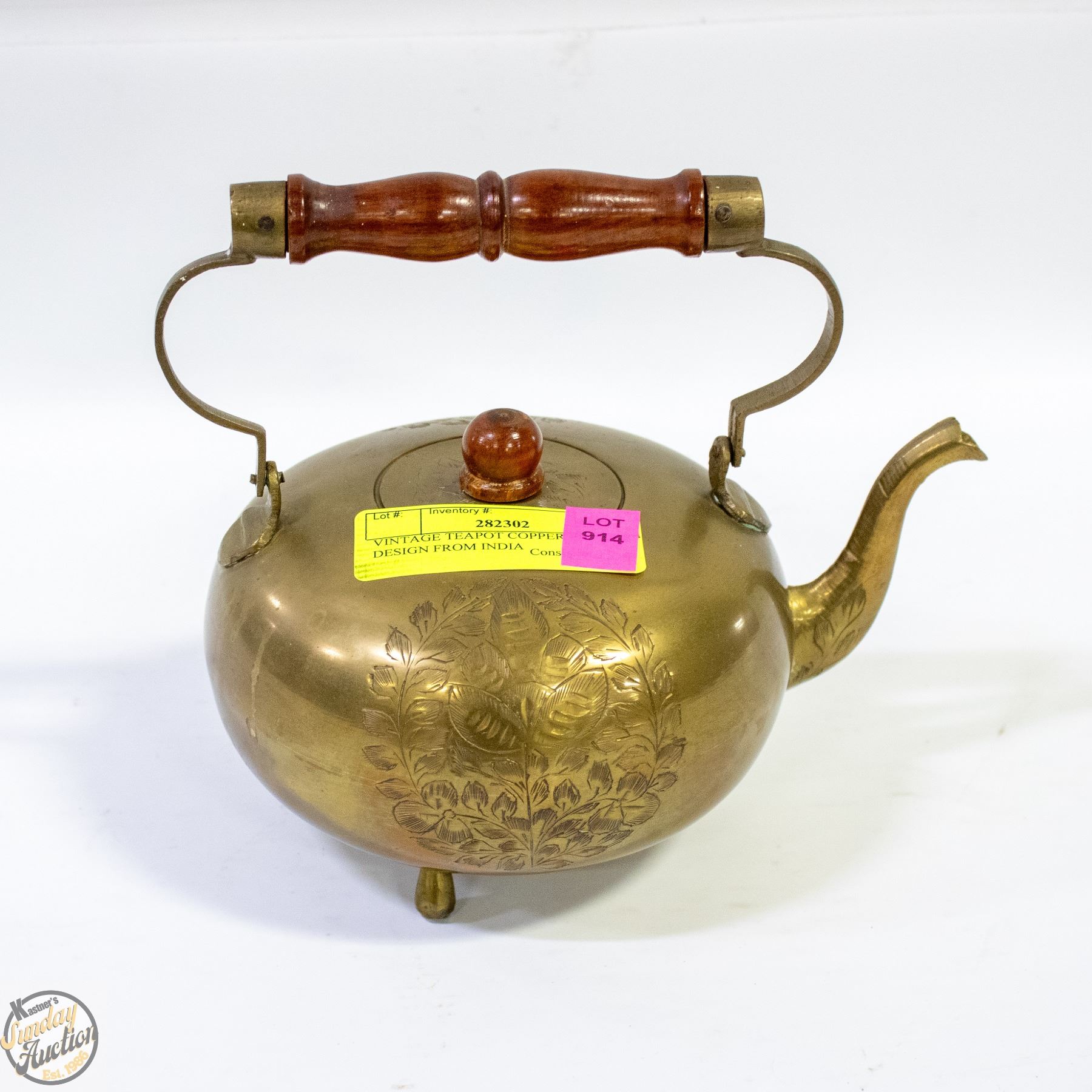 Lot 914 VINTAGE TEAPOT COPPER FLOWER DESIGN FROM INDIA