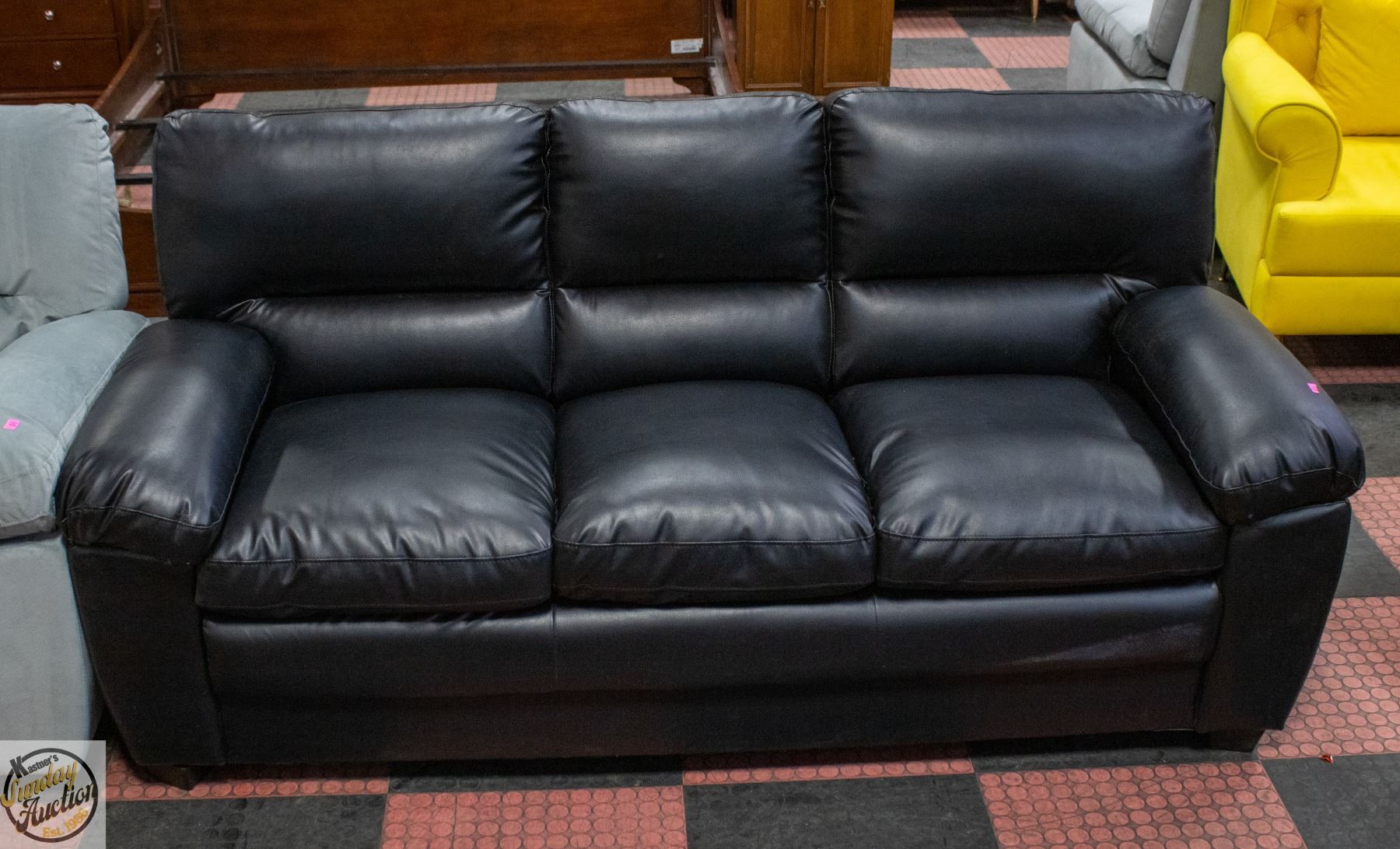 Lot 936 NEW ASSEMBLED BLACK LEATHERETTE SOFA