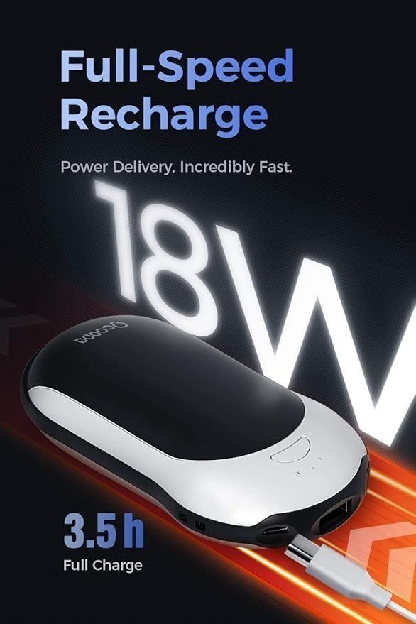 - OCOOPA Quick Charge Hand Warmer Rechargeable 10000mAh, Electric Hand Warmer,15hrs Lasting Heat, 3 Levels,Reusable USB Warmer for Camping,Hiking,Hunting,Golf,Tech Gift etc.