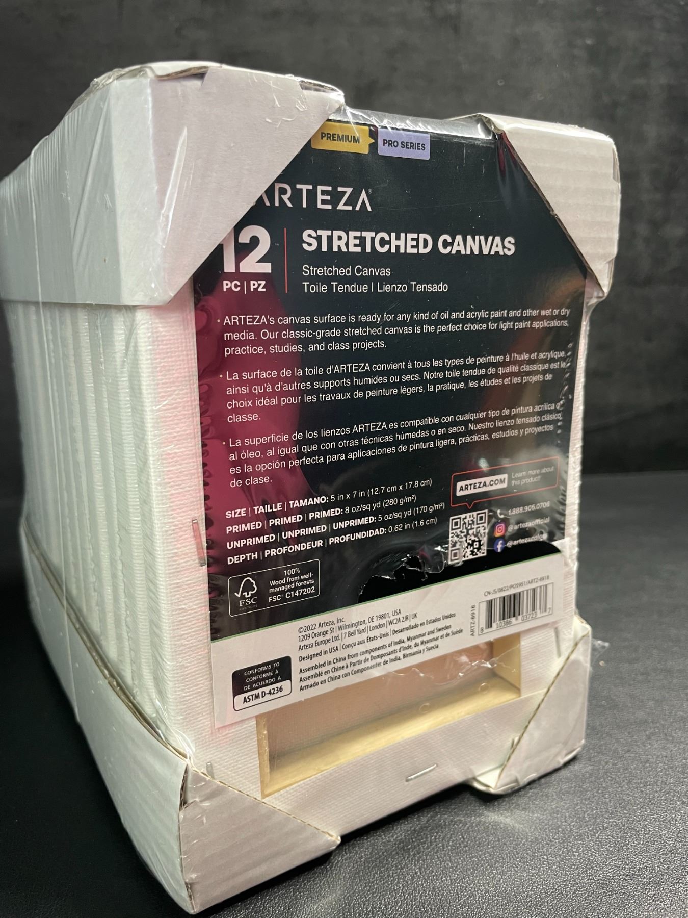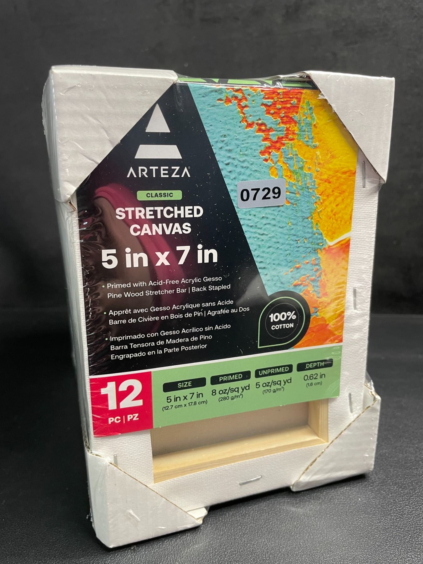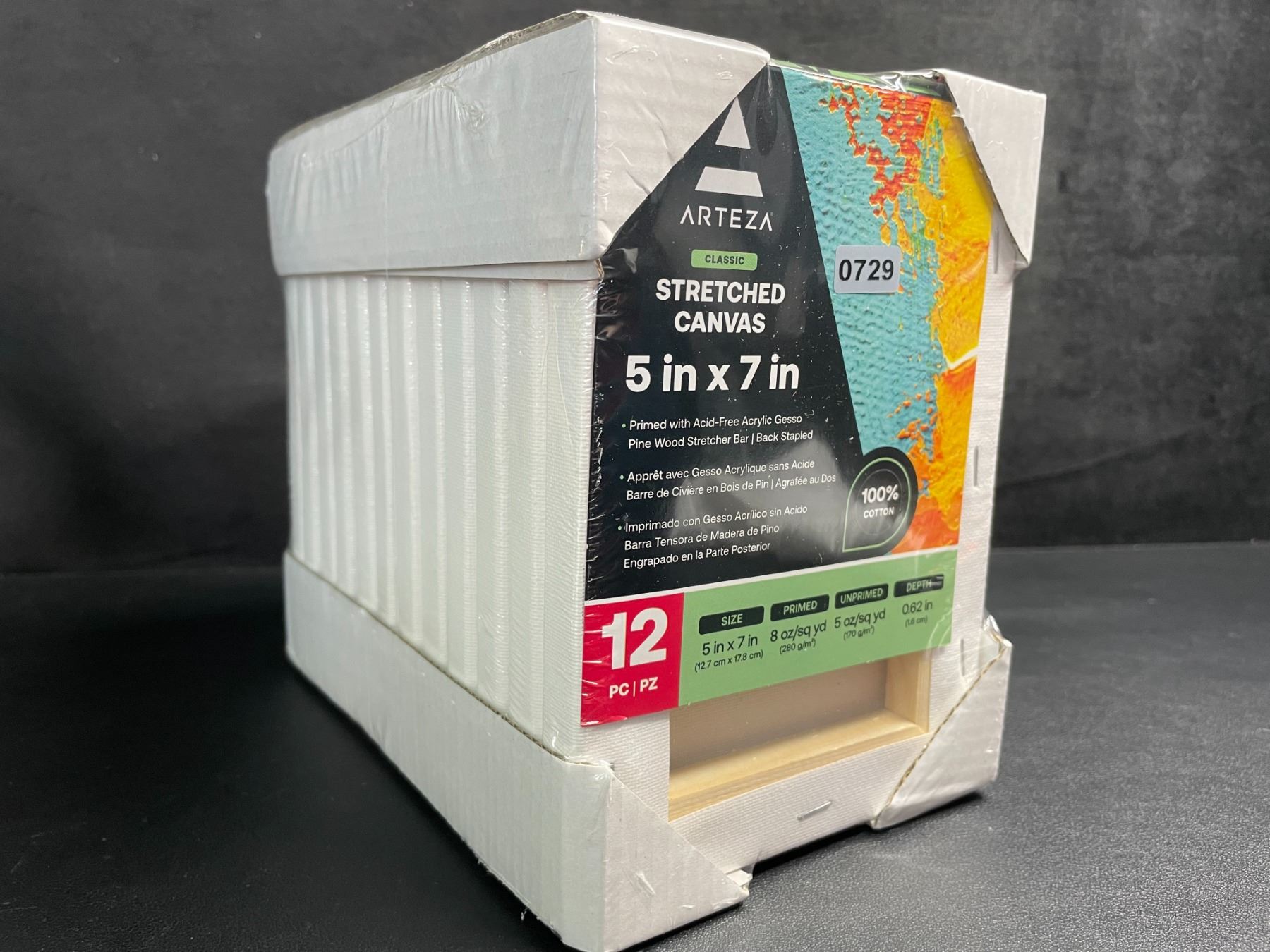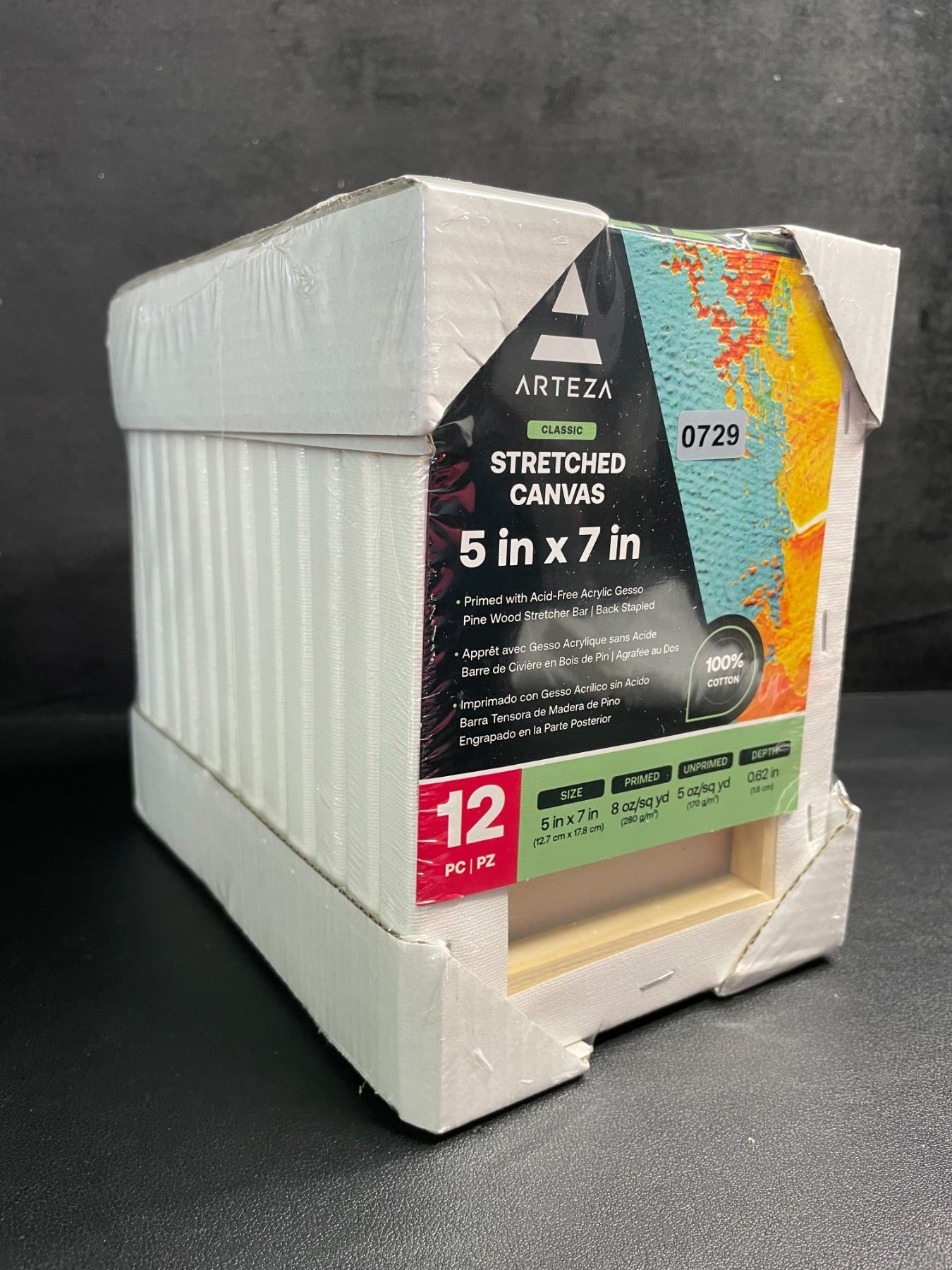 Lot 729 12-Pack of Arteza Classic Stretched Art Canvases (5" x 7" Size) 100% Cotton - New Sealed