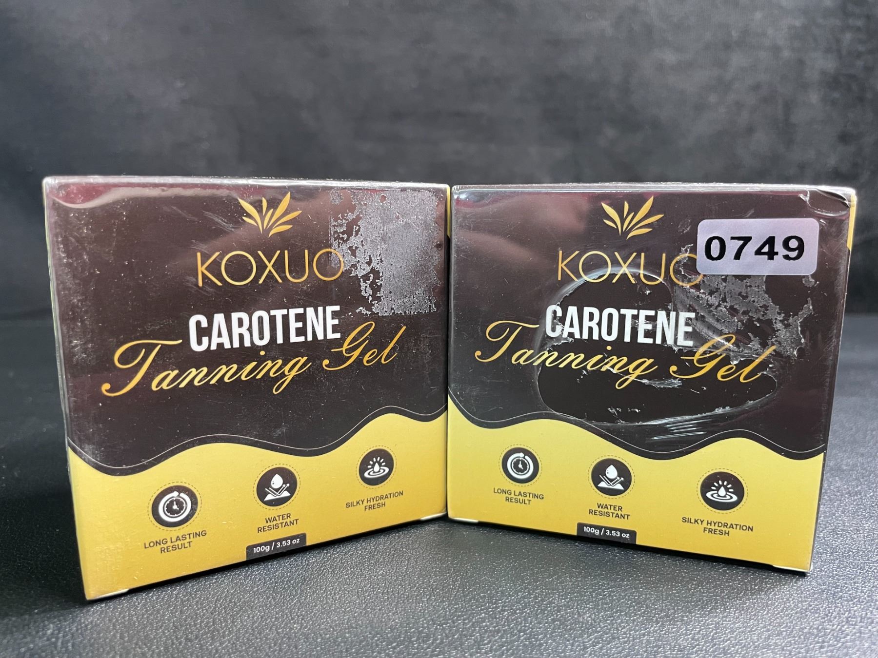 Lot 749 2 Boxes of KOXUO Carotene Tanning Gels (100g) Self Tanner/Natural Bronze Glow - New Sealed
