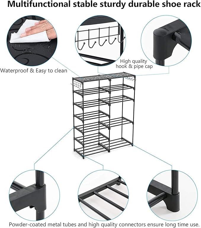 - 7 Tier Shoe Rack/Shoe Tower/Shoe Shelf Shoe Storage Organizer Unit; Durable Metal Shoe Rack; Holds 24-30 Pairs; Organizer Shelf Stackable Cabinet